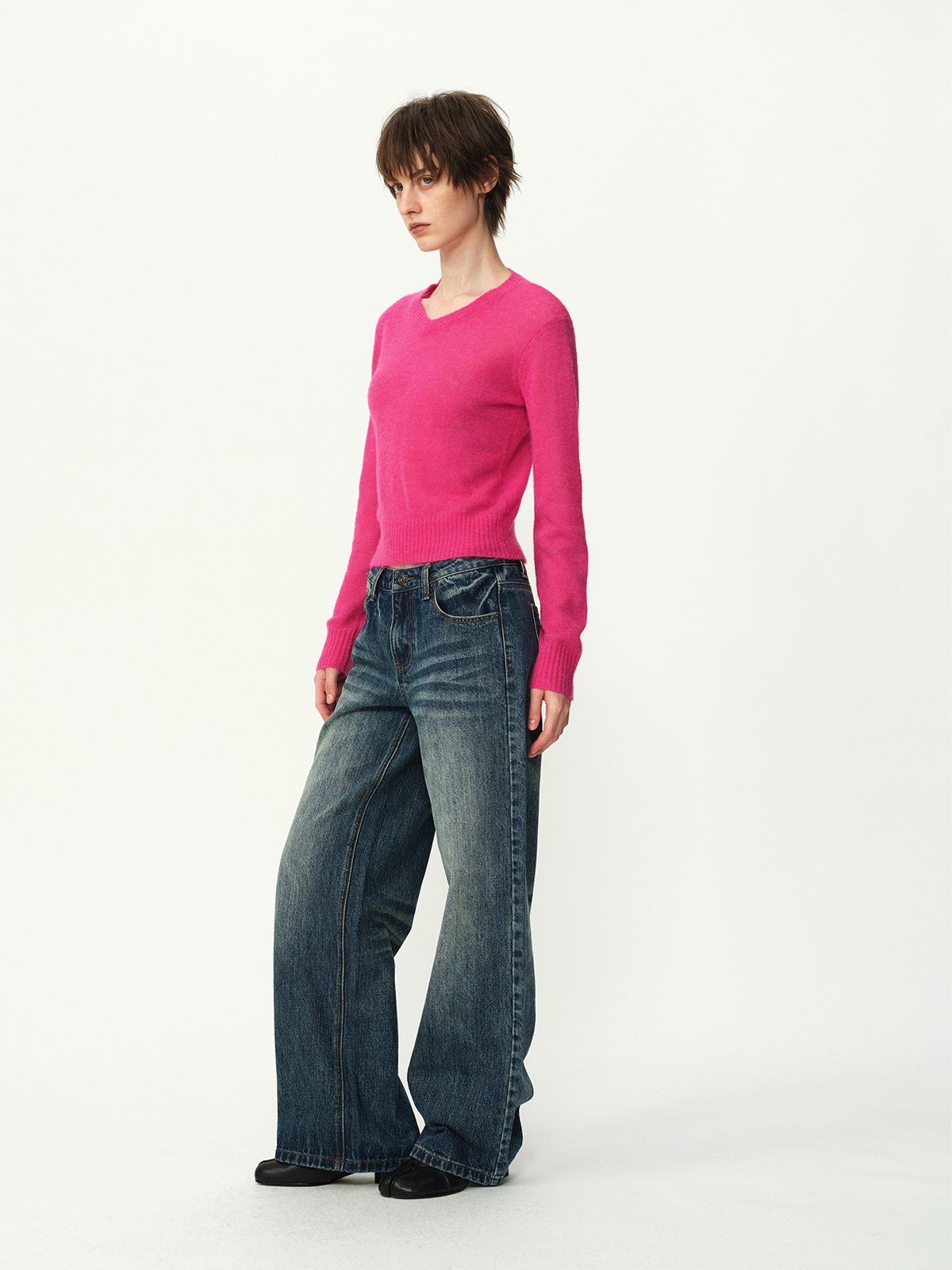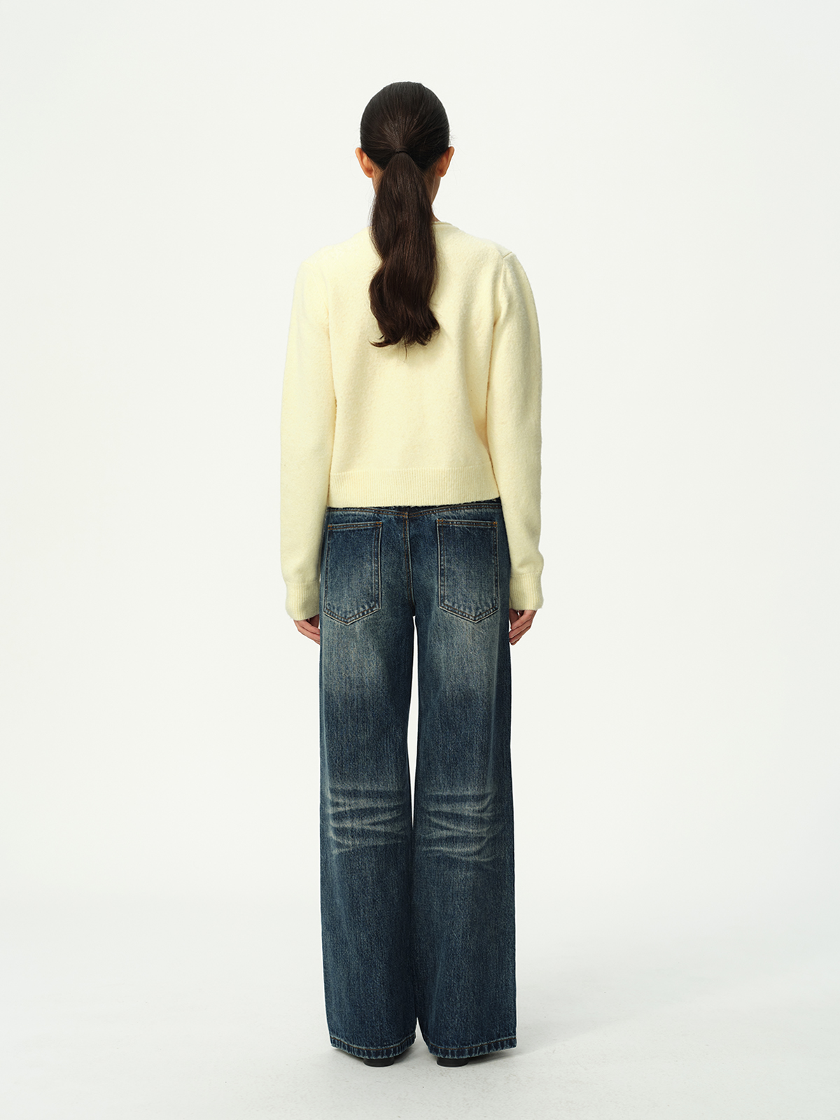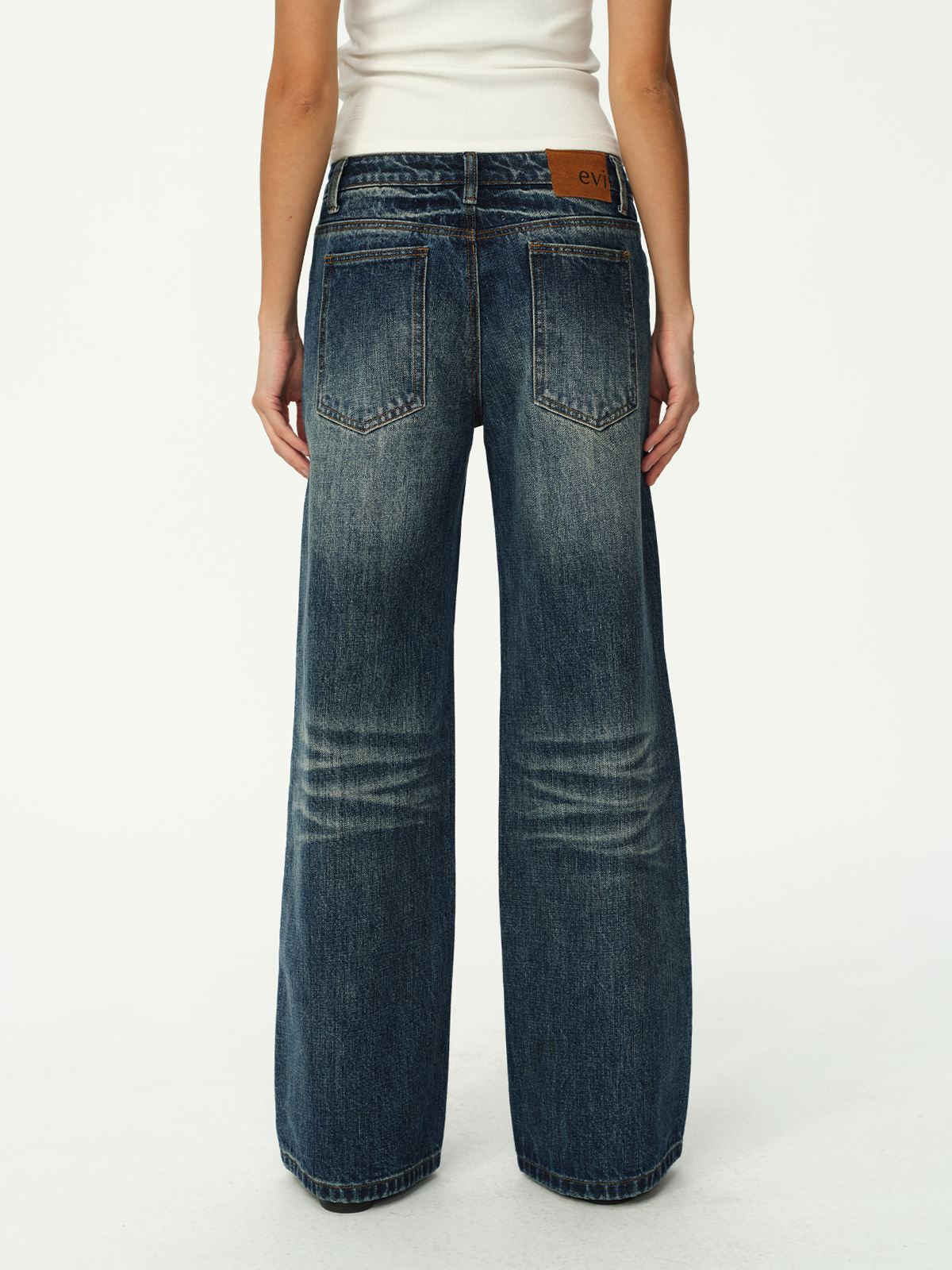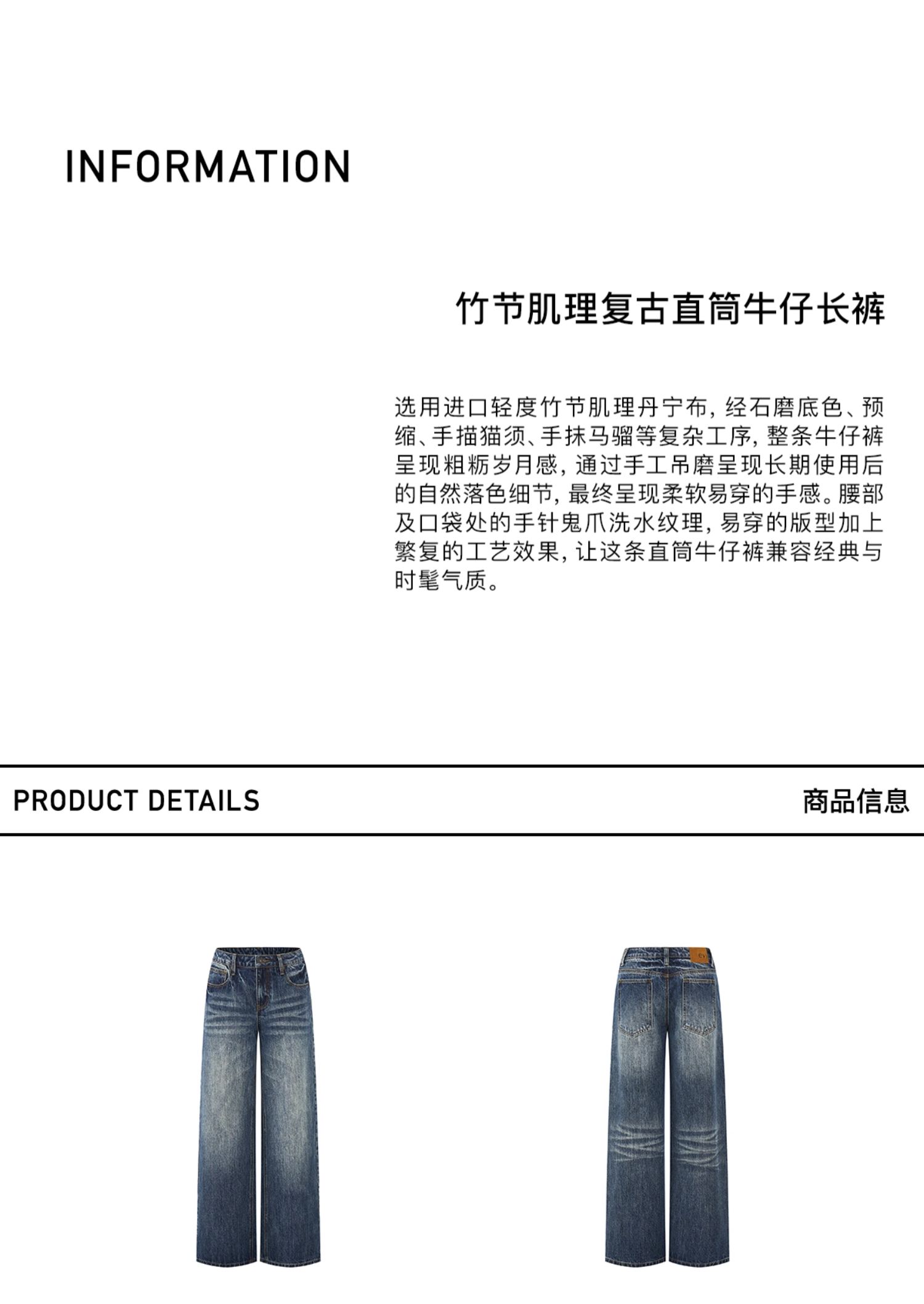 Evistub girls/E-5DCK1415/复古竹节猫须做旧牛仔裤
