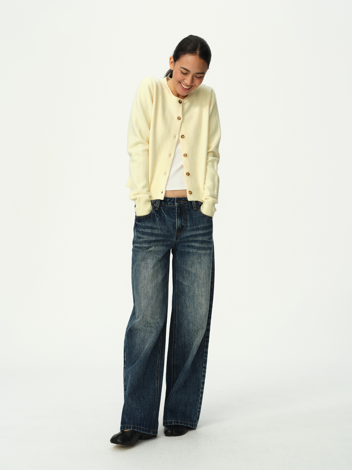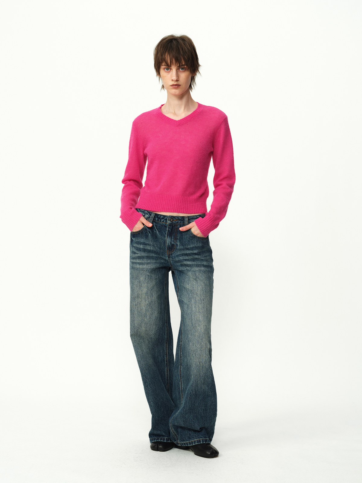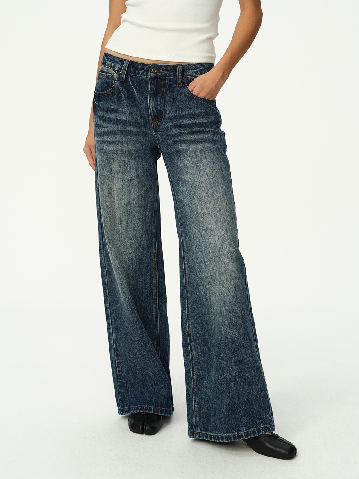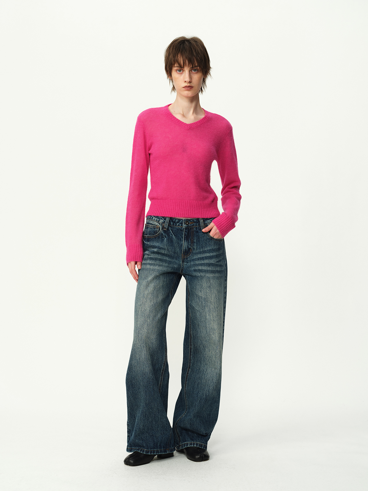 Evistub girls/E-5DCK1415/复古竹节猫须做旧牛仔裤