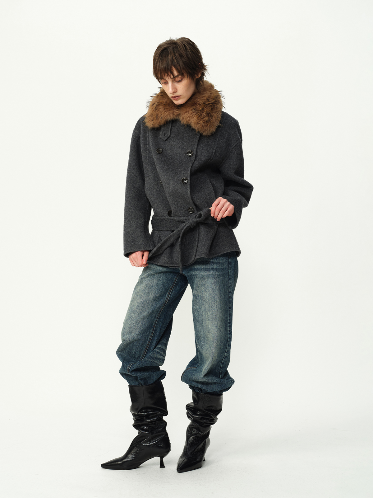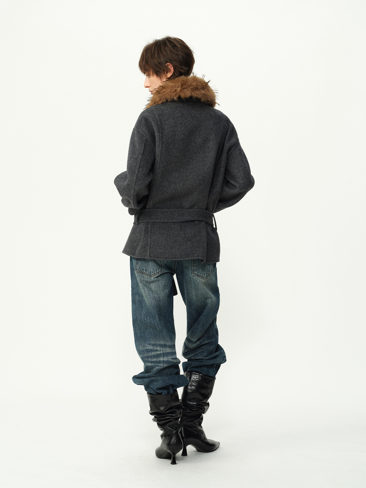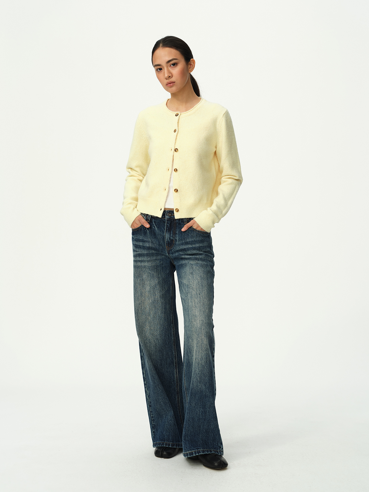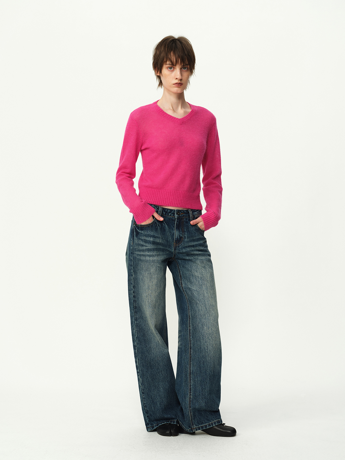 Evistub girls/E-5DCK1415/复古竹节猫须做旧牛仔裤