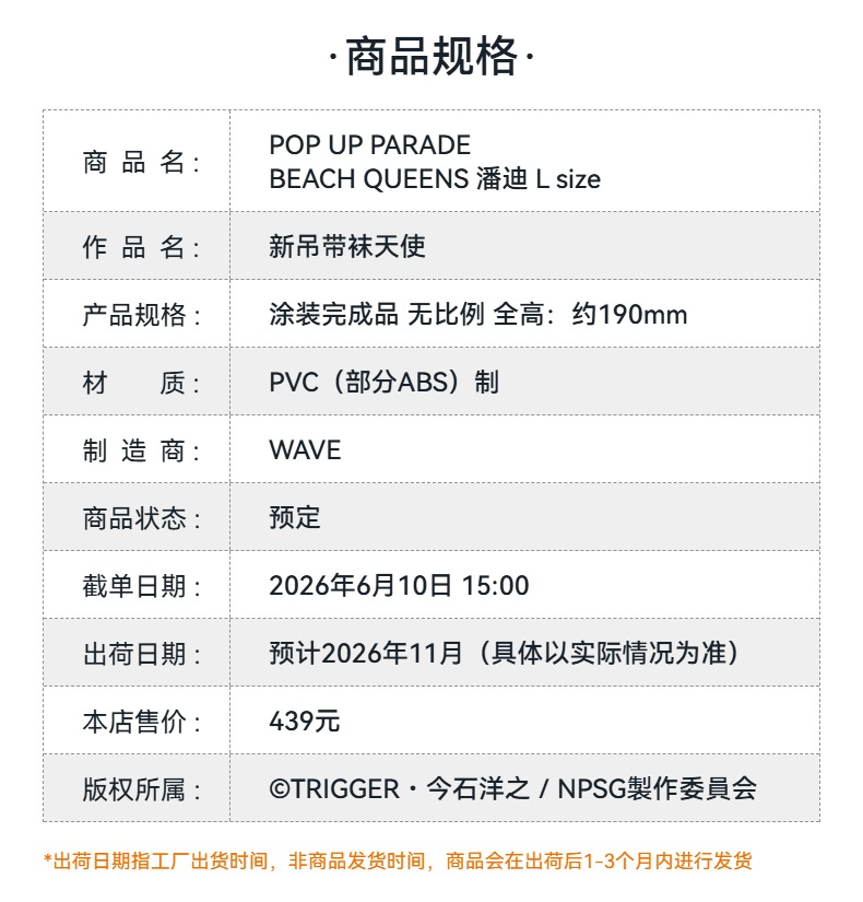 【GSC预售定金】POP UP PARADE BEACH QUEENS 潘迪 L size 新吊带袜天使