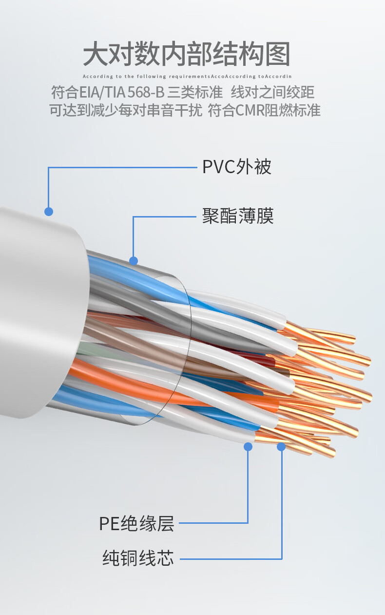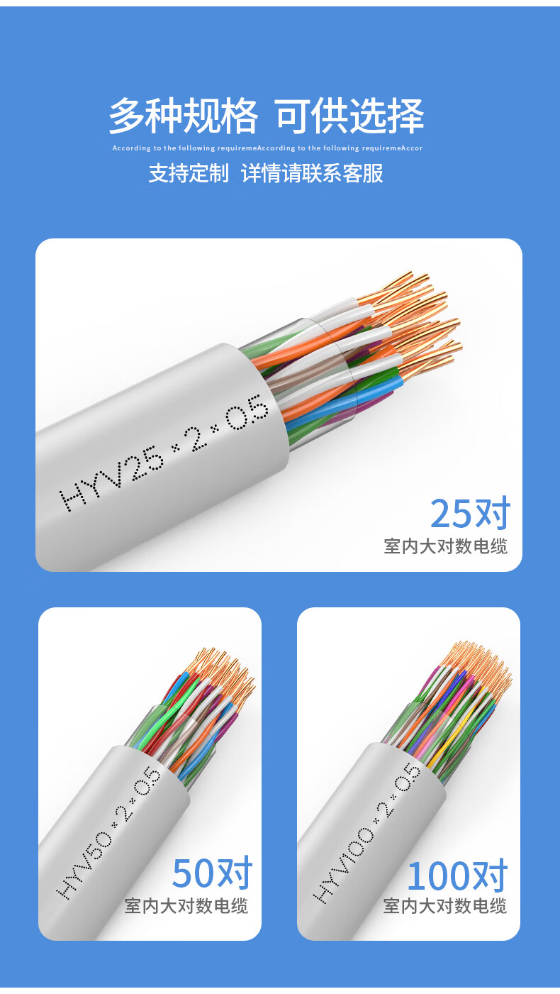商品名称:纯铜室内阻燃HYV大对数0.4/0.5电缆通信电话线HSYV510 20 25 50100对三类电话双绞线电话通讯工程专用(不可用于网络)