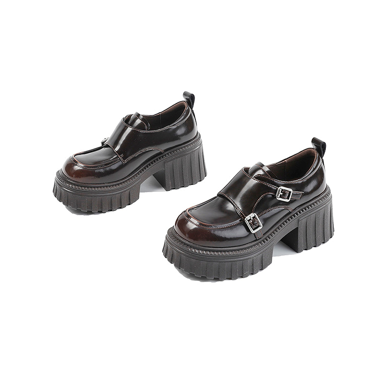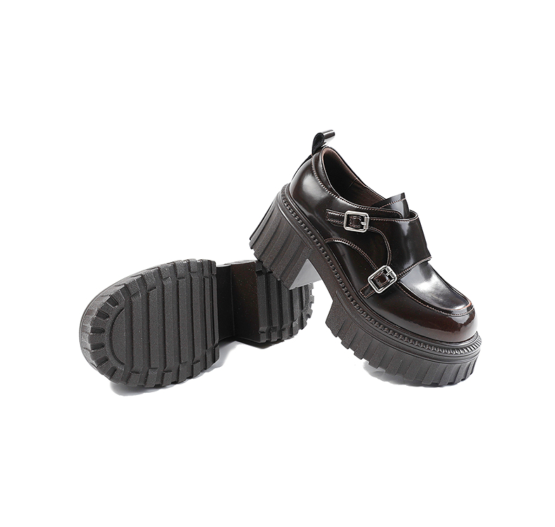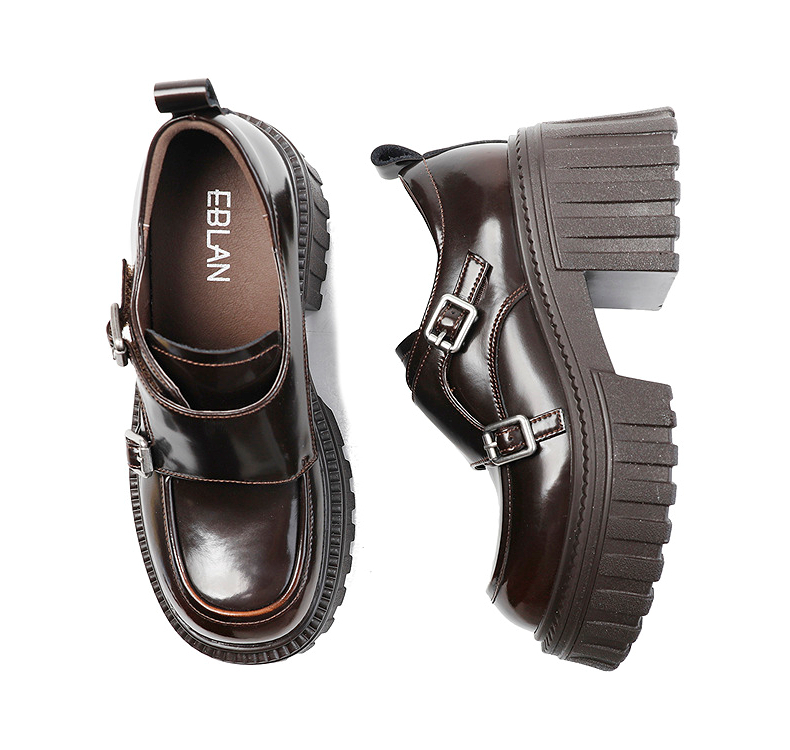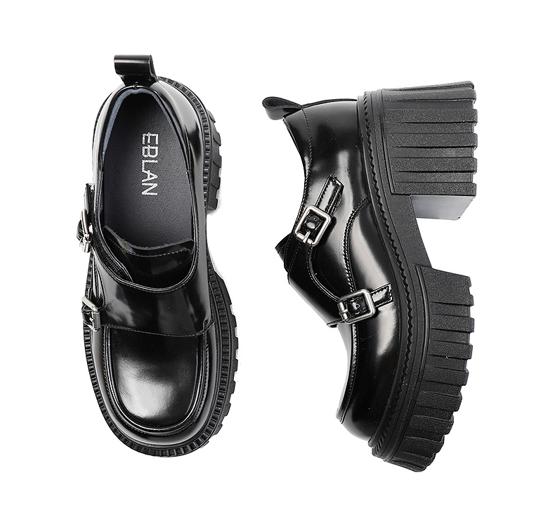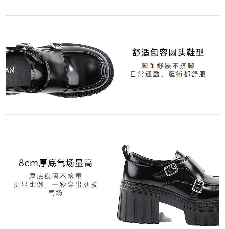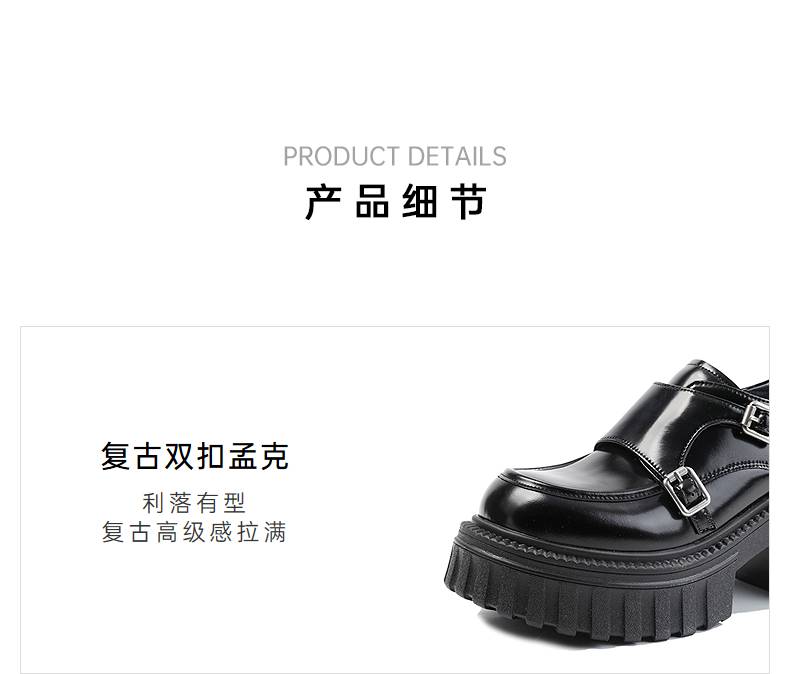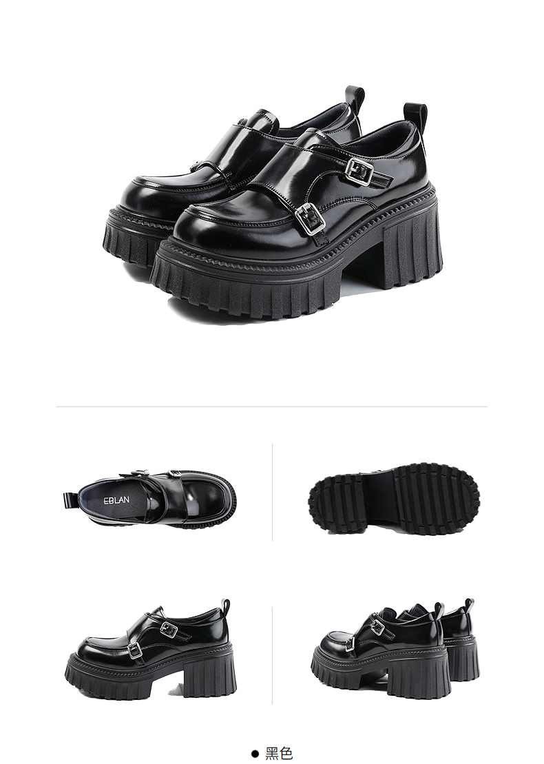 伊伴2026春季复古摩登双扣厚底增高孟克乐福鞋B26125120