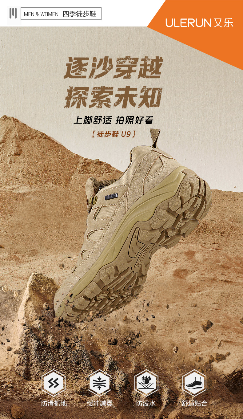 【又乐】户外徒步鞋轻量化防泼水低帮减震防滑耐磨时尚U9