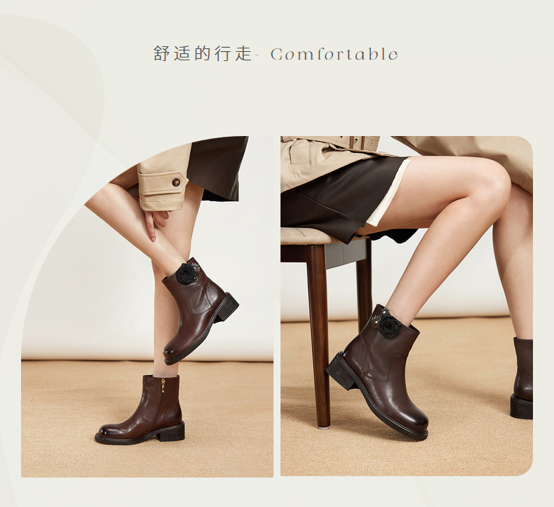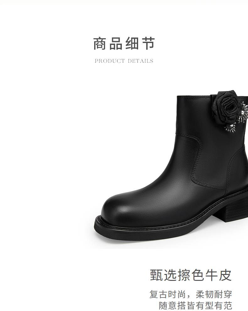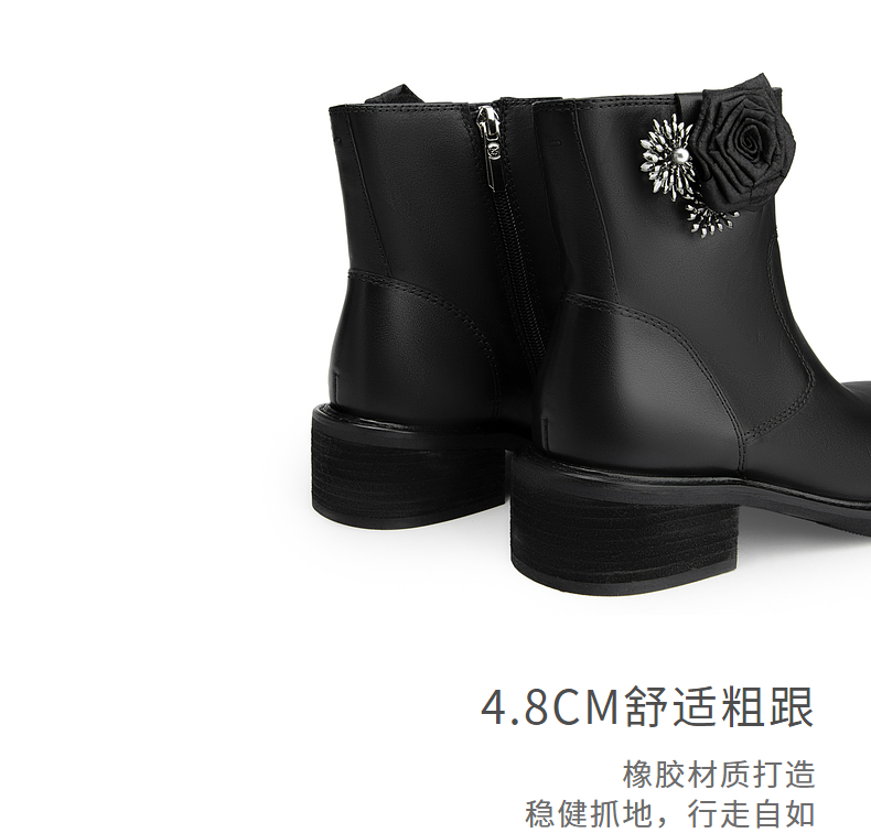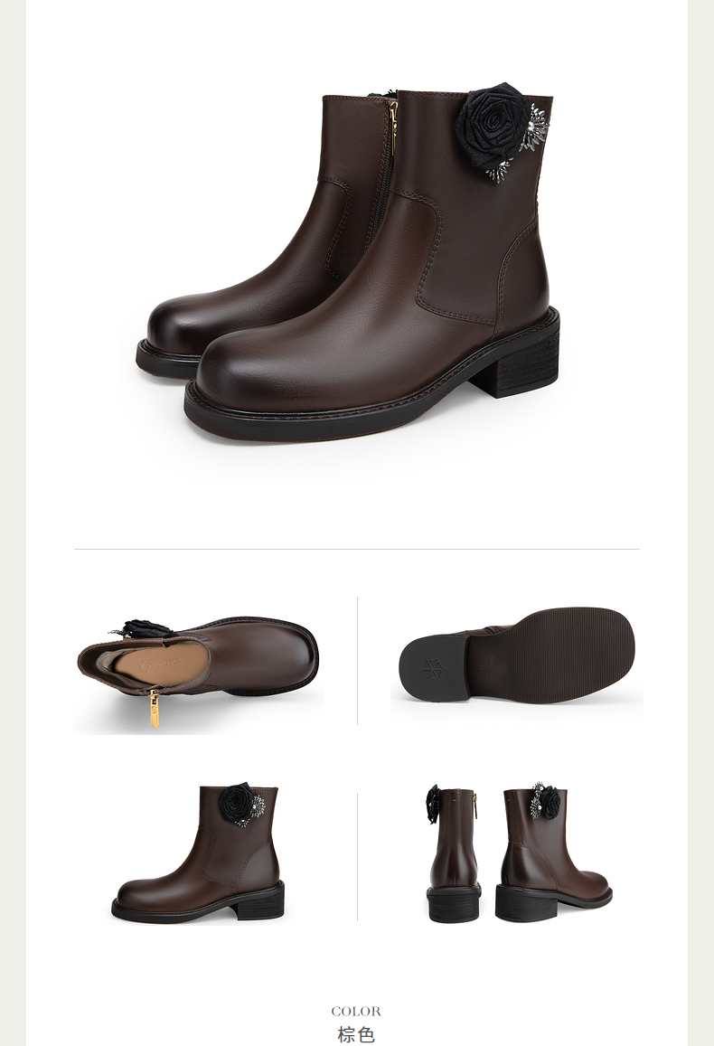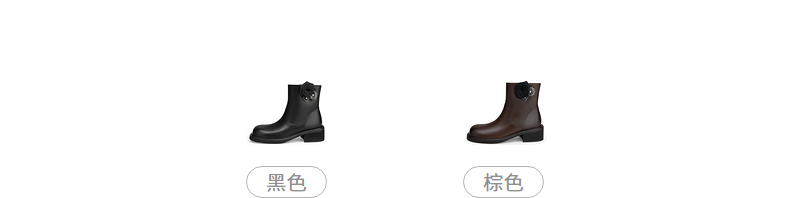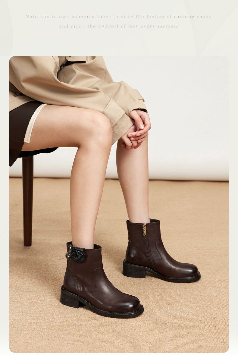 natursun百搭时装靴秋冬季休闲粗跟圆头马丁靴可拆装饰短靴女N24525561