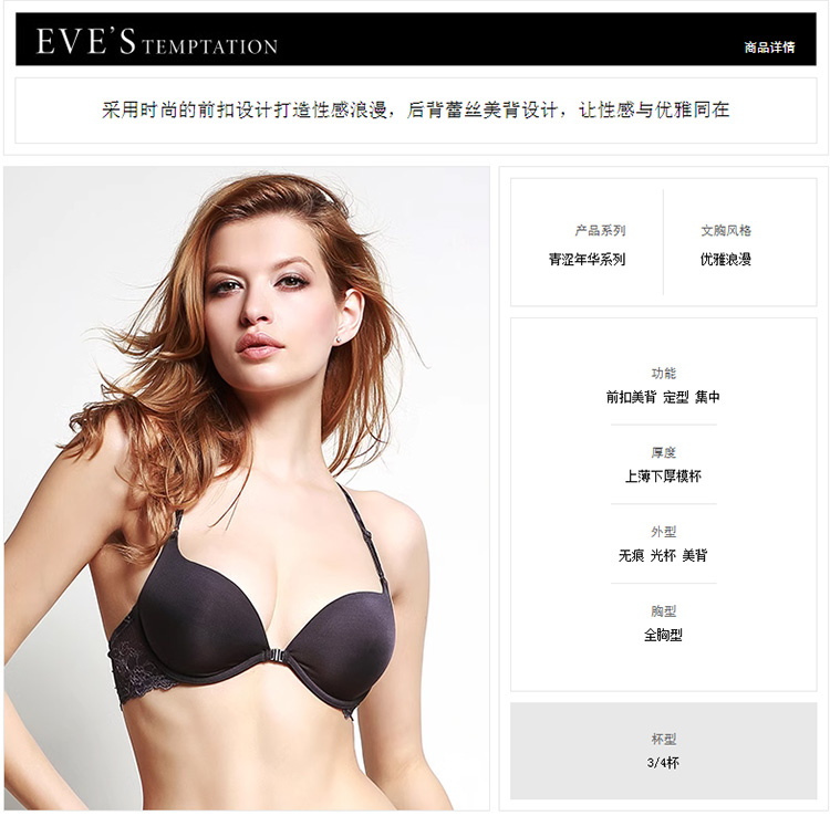 【云优选】夏娃的诱惑青涩光面无痕前扣美背内衣女小胸聚拢加厚夏季胸罩文胸