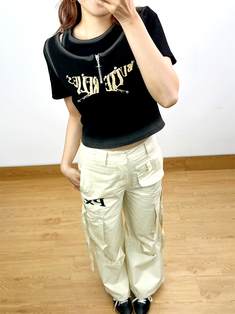 P&X设计师女装夏季多口袋户外夏季阔腿休闲长裤 824209259 杏色