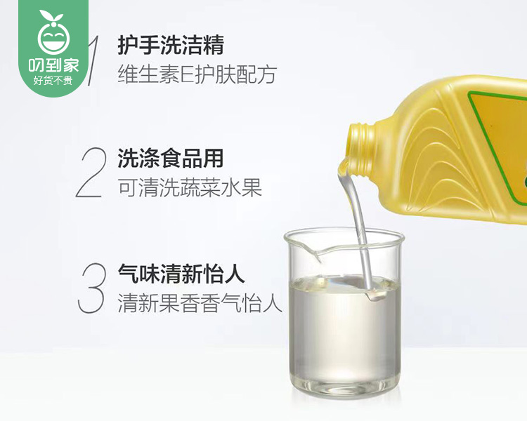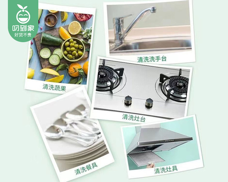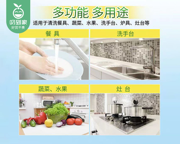 泡沫适中,轻松过水,有效清洗餐具厨具果蔬等;