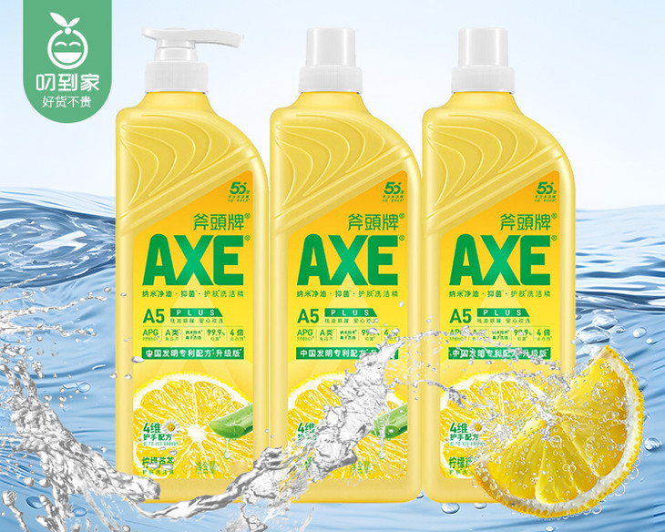 斧头牌柠檬护肤洗洁精(柠檬味)/1组(1kg*3瓶)