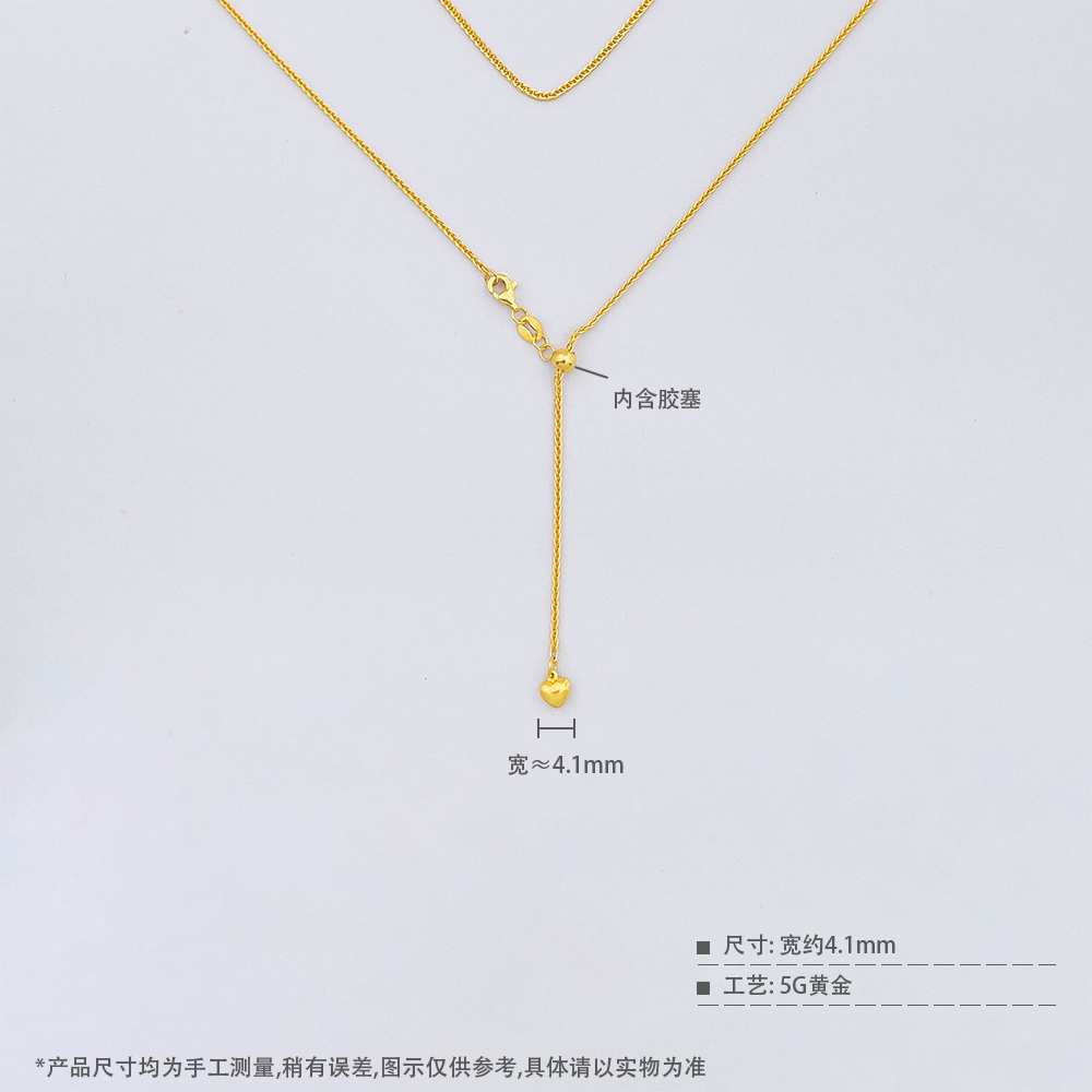 【限时7.5折】【定价黄金】足金999 #蛇年新品 【精品】5G黄金蛇骨龙骨抽拉调节项链(AN5GXL00008)