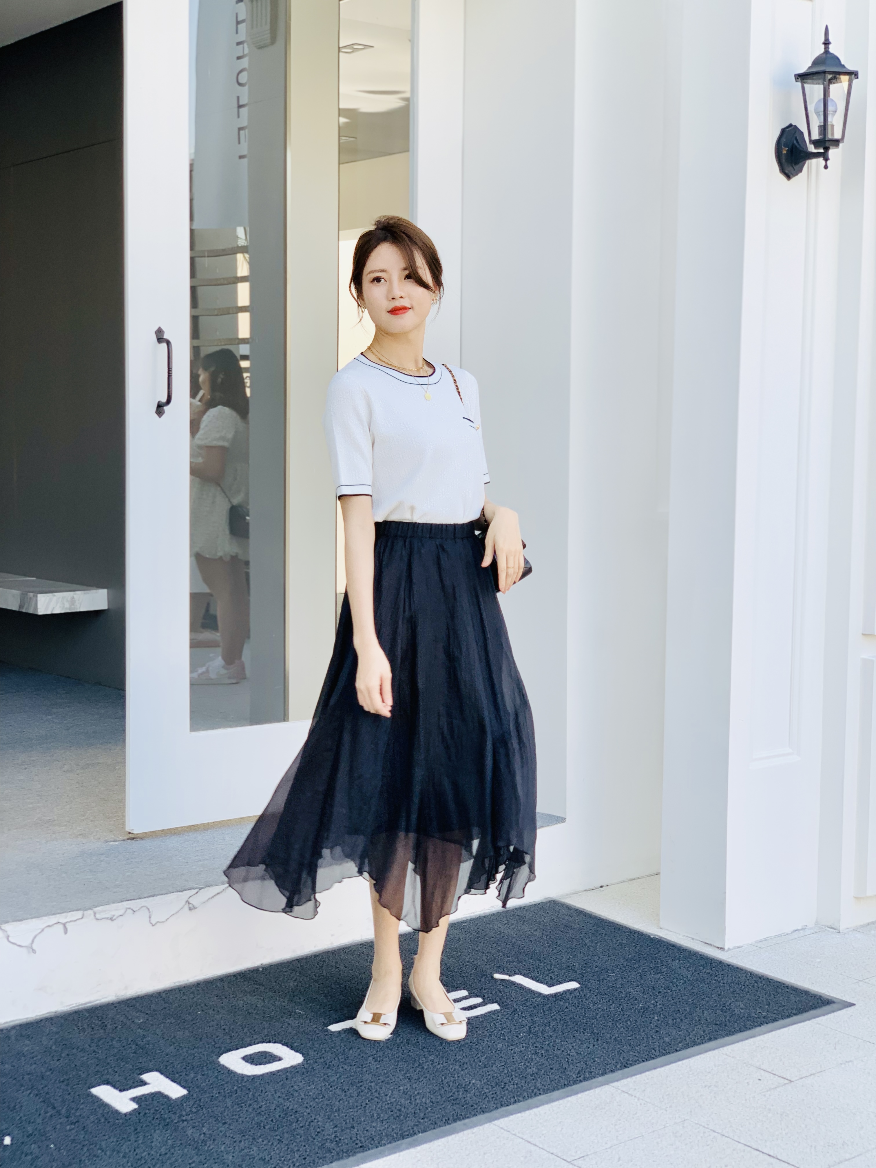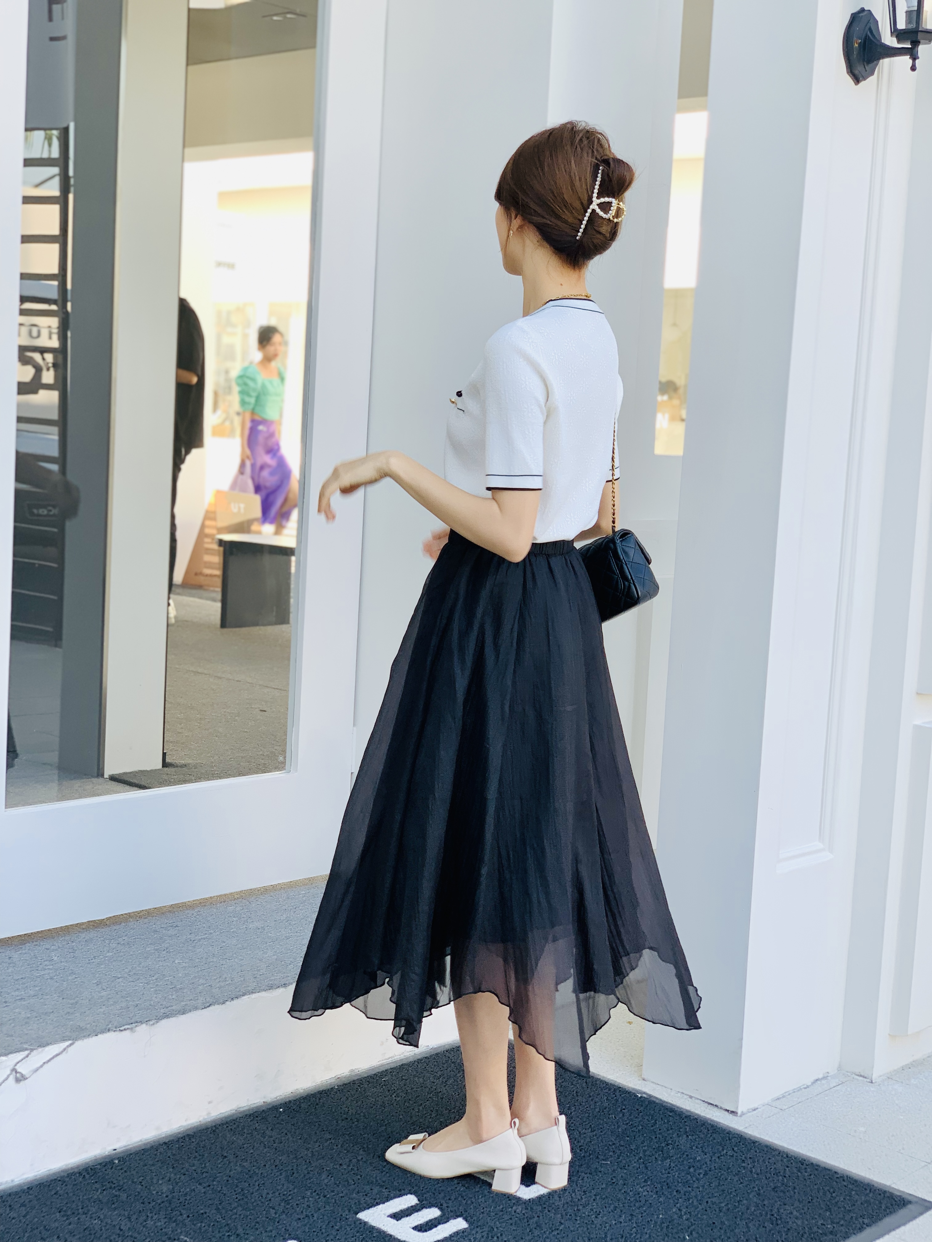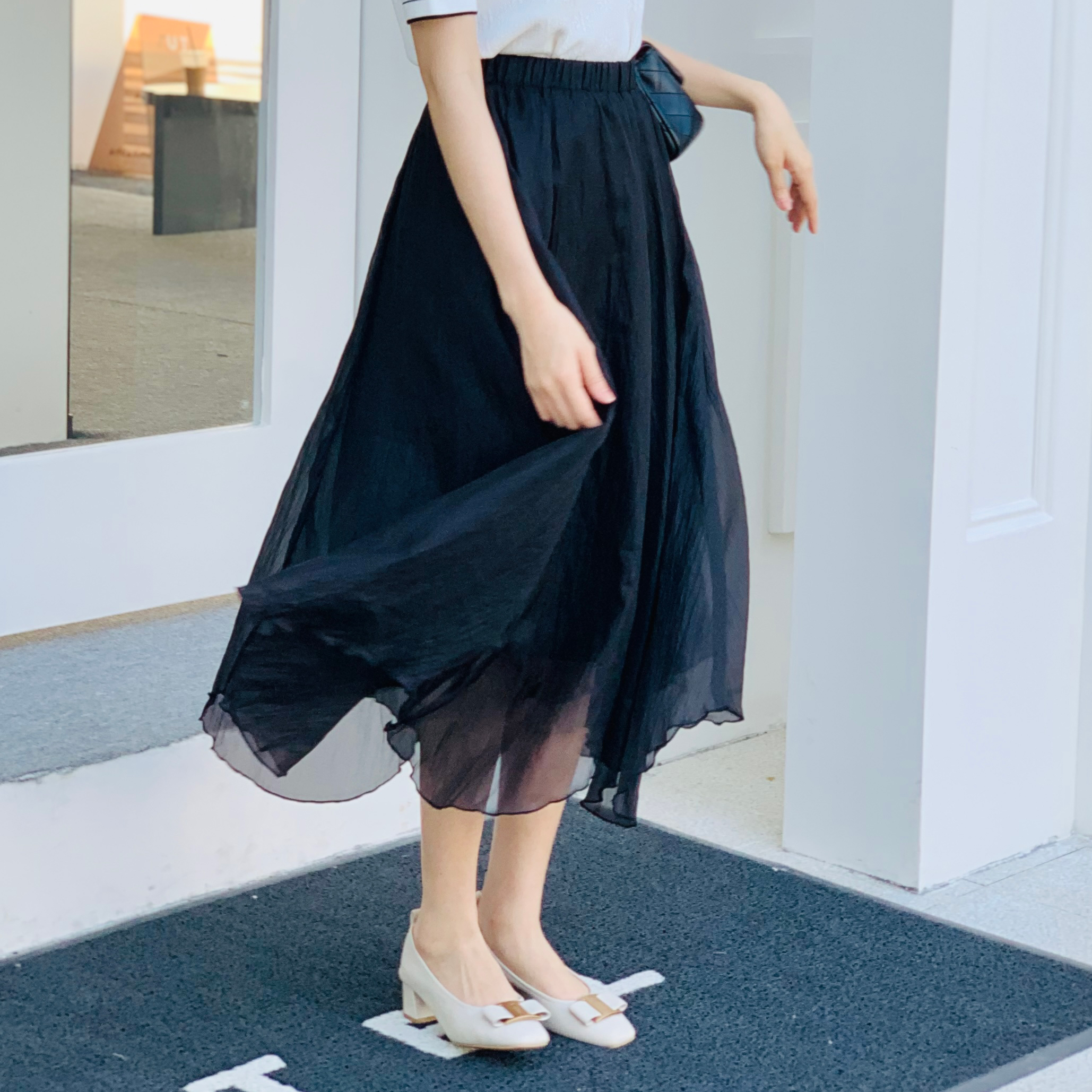 【百图lulu定制】【彩云半身裙】闪光皱 三层 轻薄网纱 不规则裙摆 半身裙