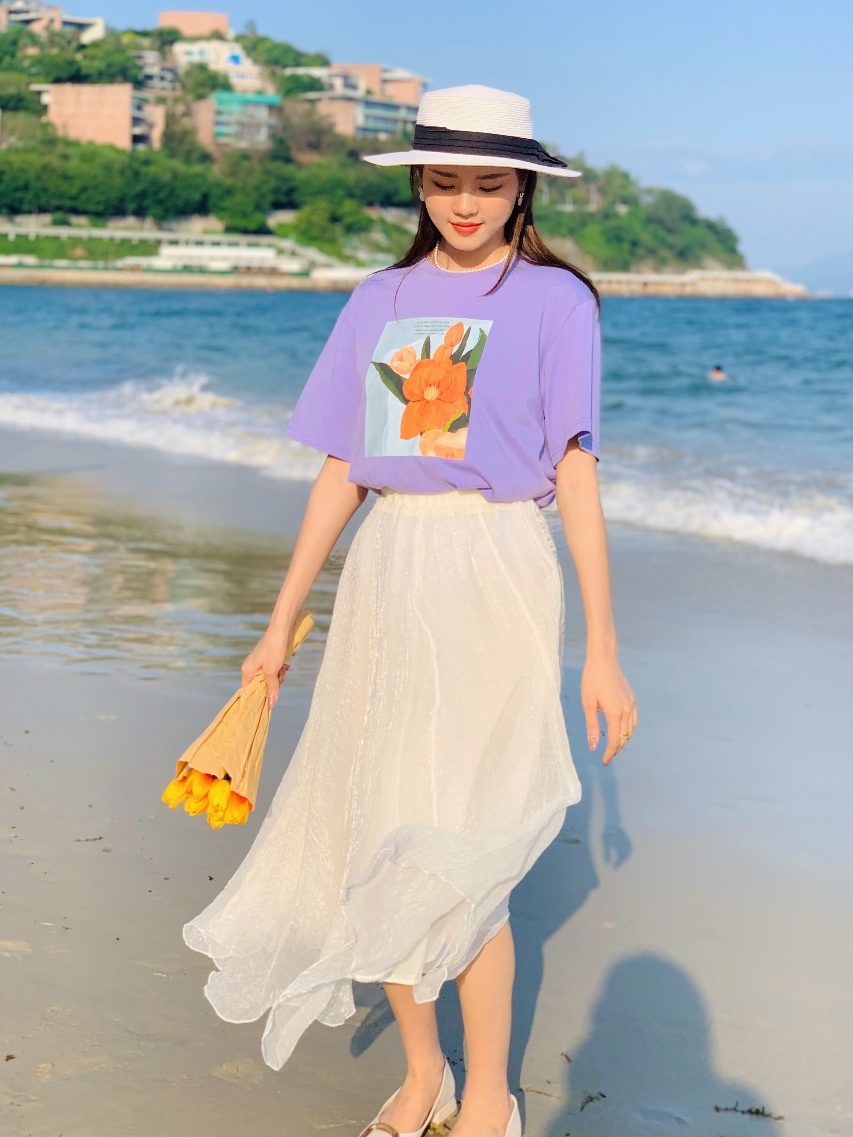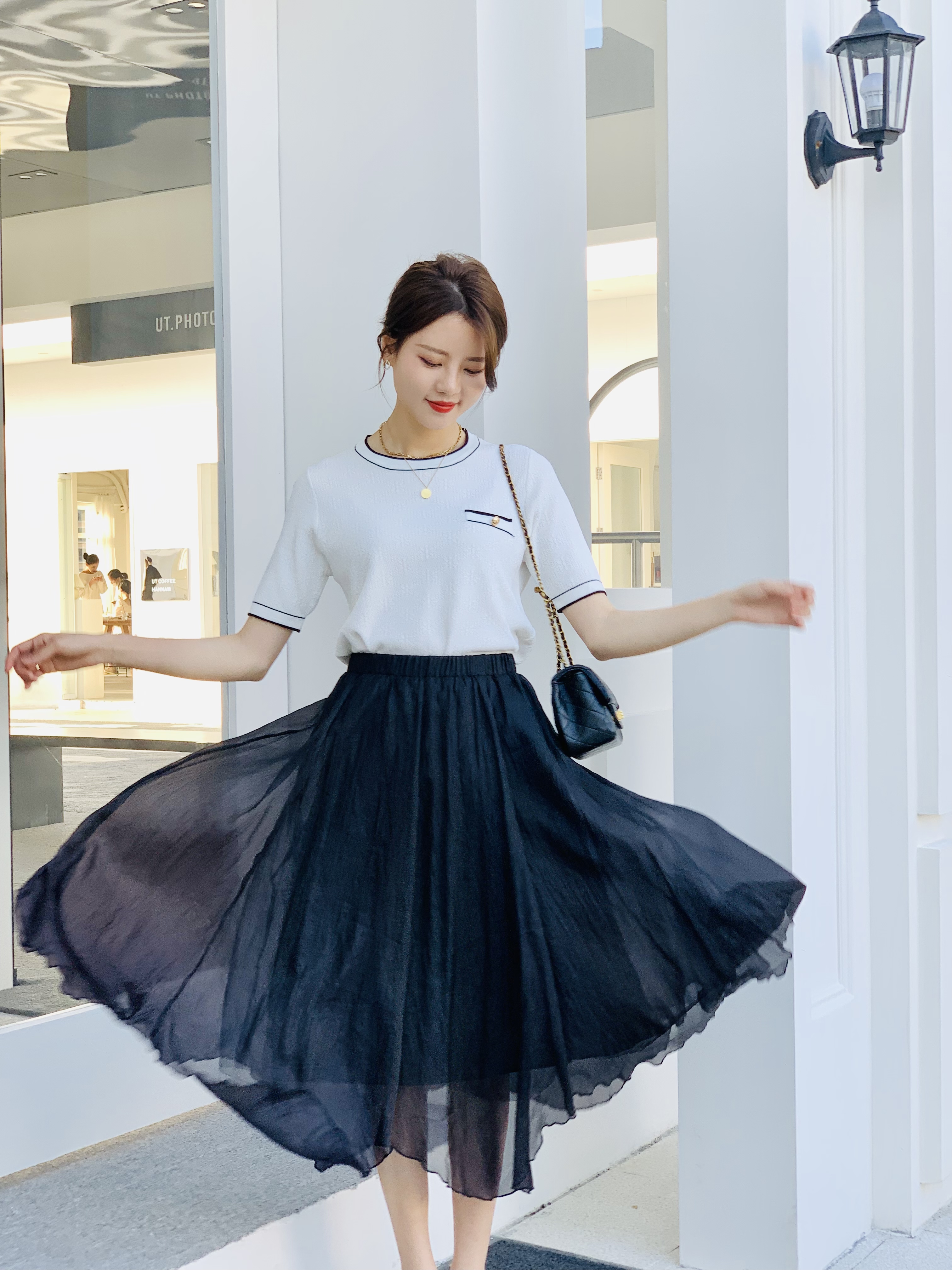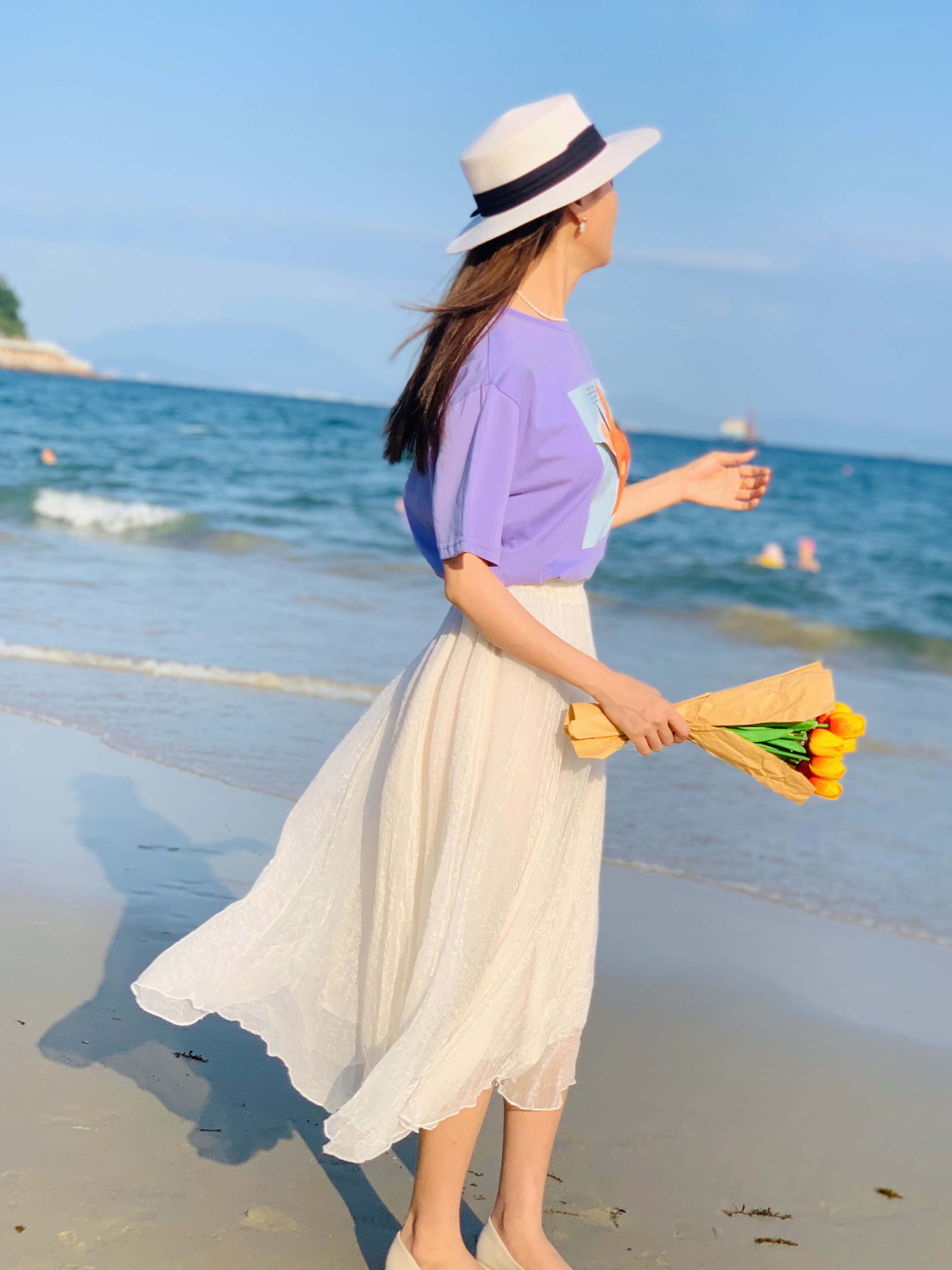 【百图lulu定制】【彩云半身裙】闪光皱 三层 轻薄网纱 不规则裙摆 半身裙