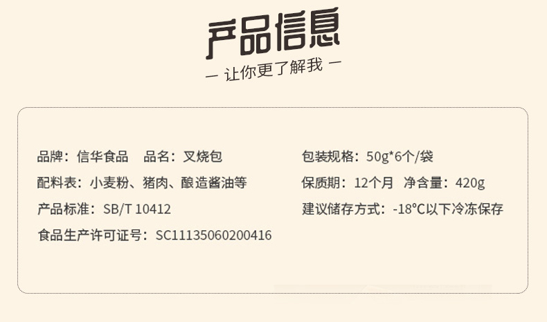 信华叉烧包(50g*6个/包)生产日期: 2月