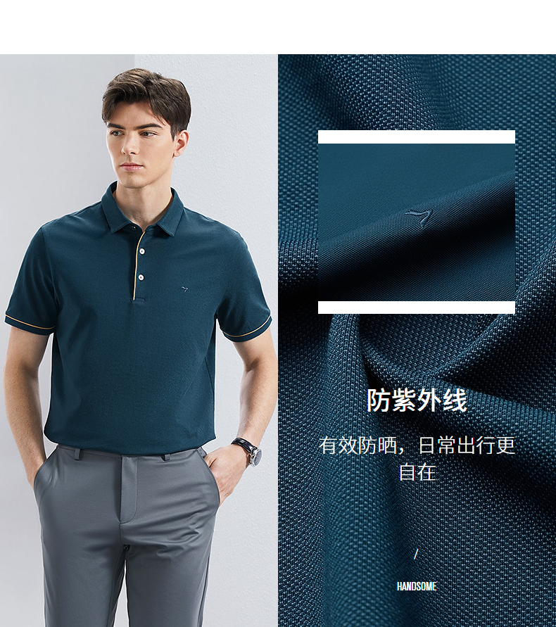 【抗菌/防紫外线】柒牌男士polo衫短袖夏季新款商务休闲翻领上衣126T70460