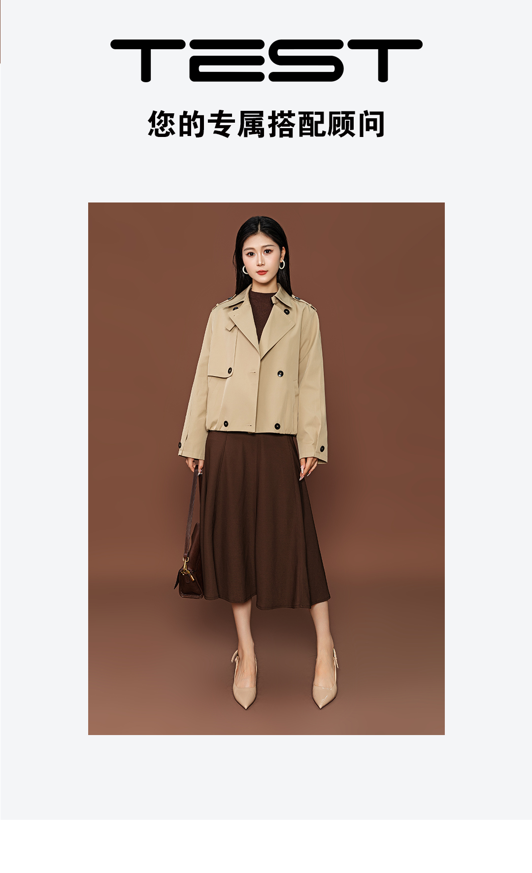 秋上新百搭短款双排扣时尚修身风衣外套2253001 商品图2