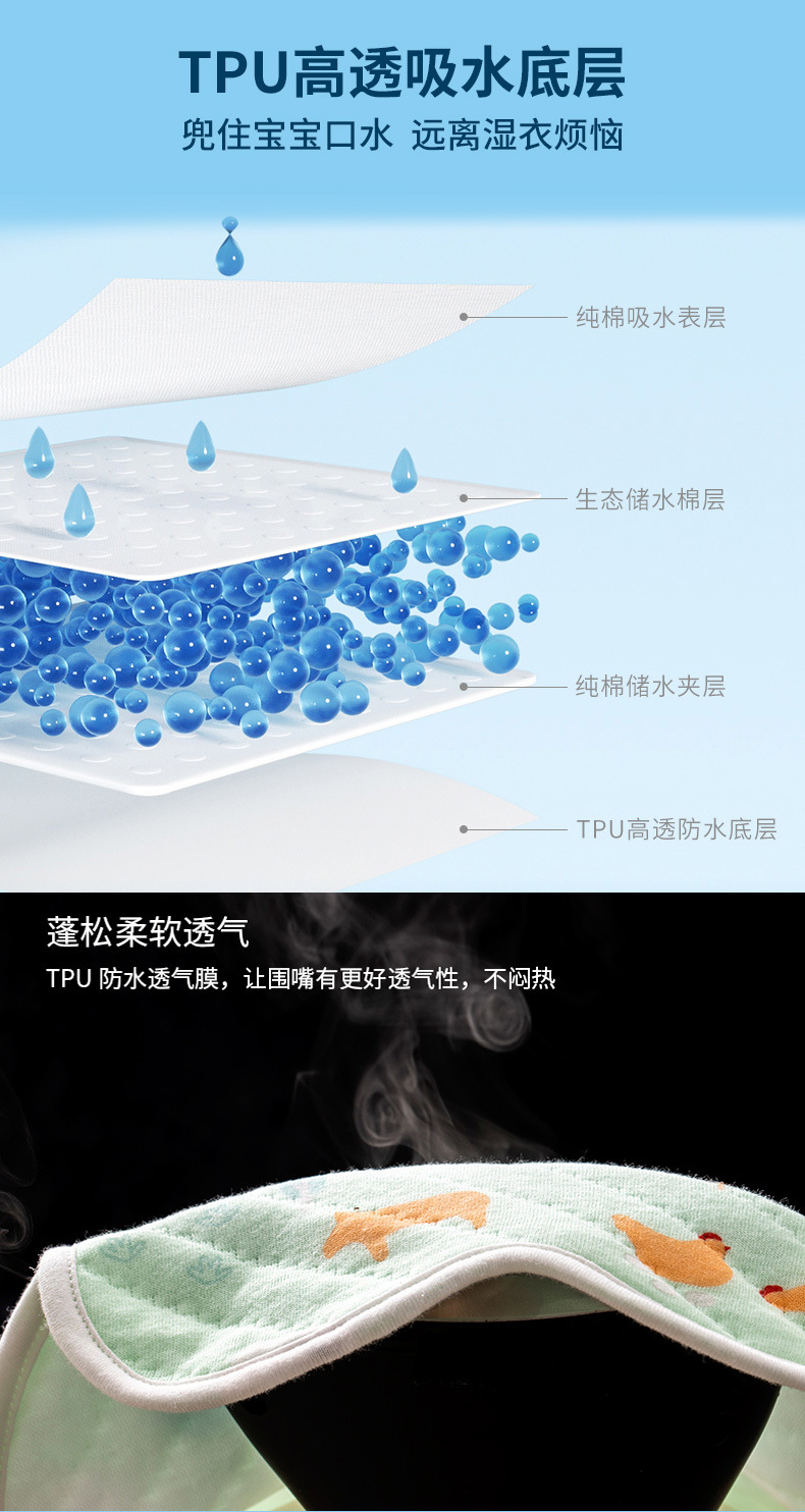 5条装防水纯棉口水巾小孩婴儿男女宝宝口水兜新生儿围嘴防水围兜