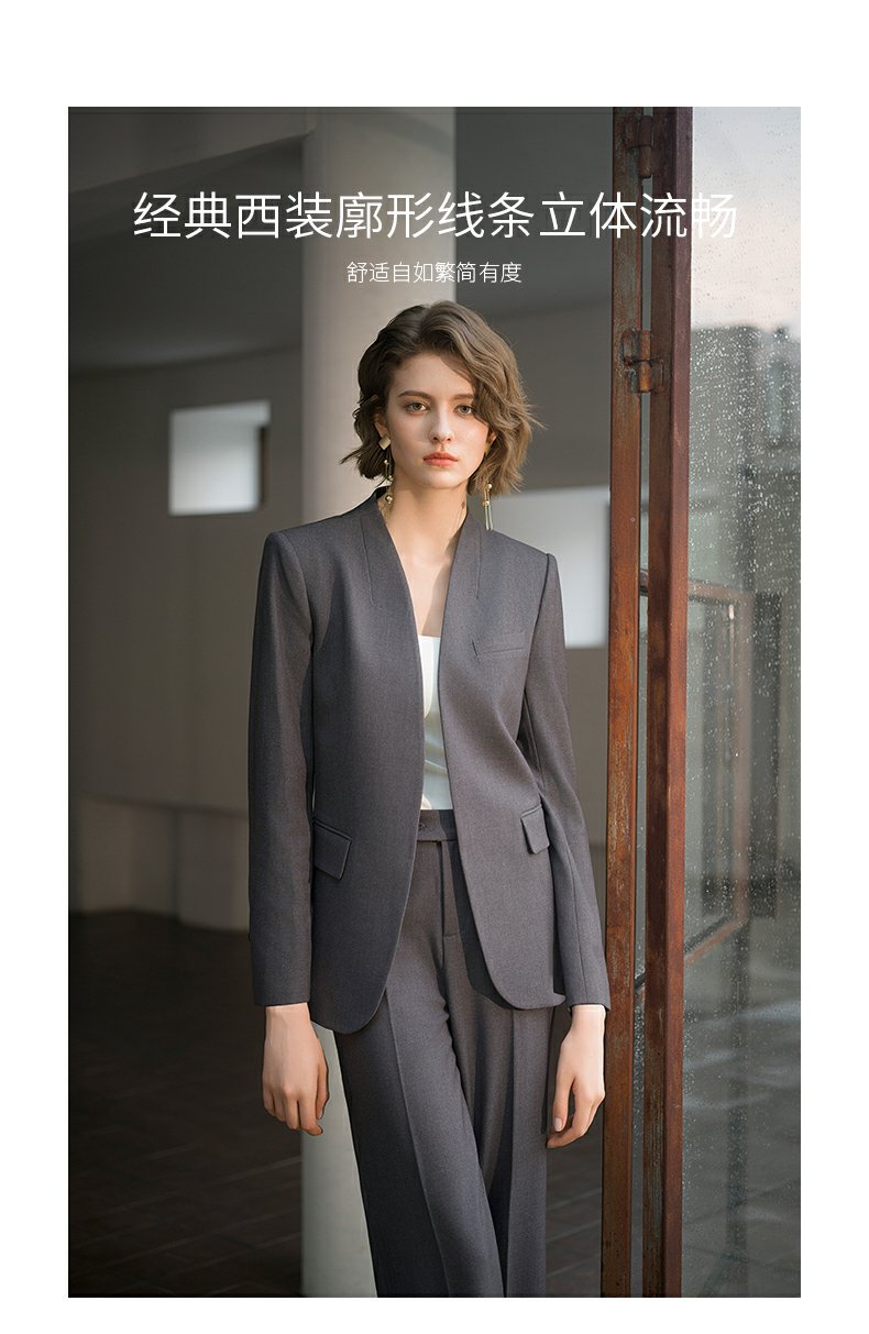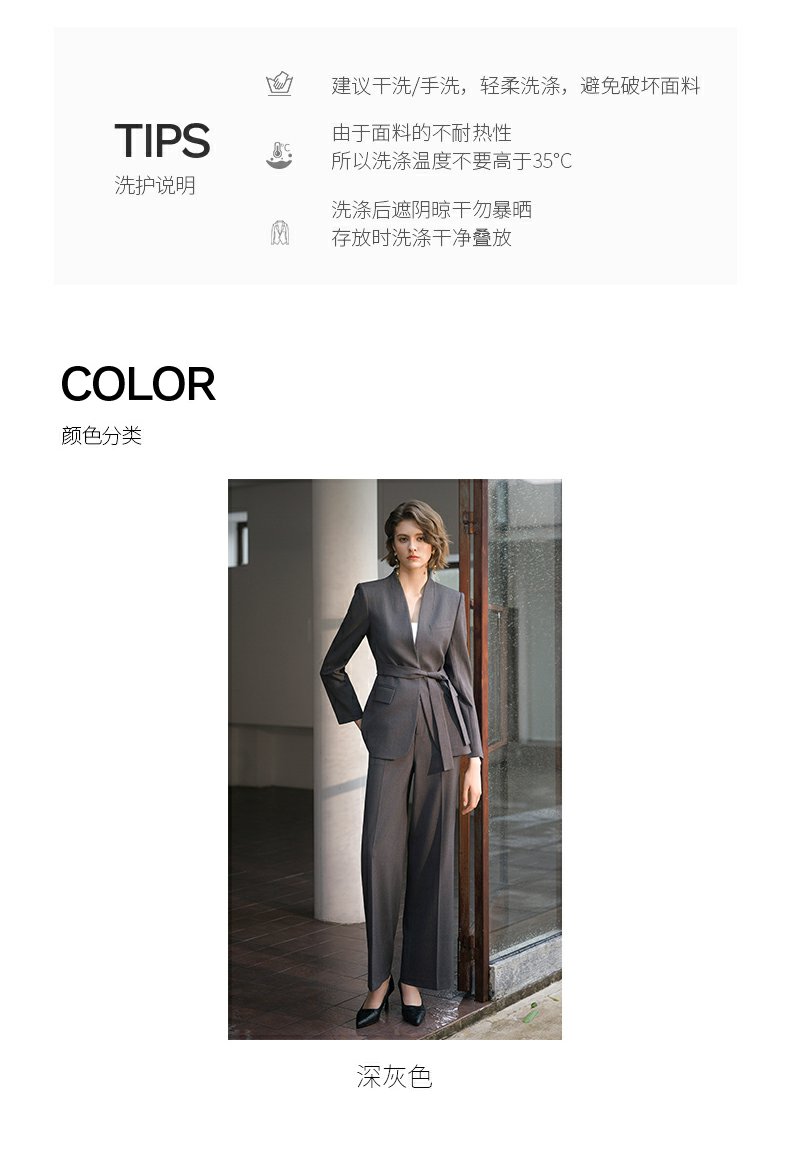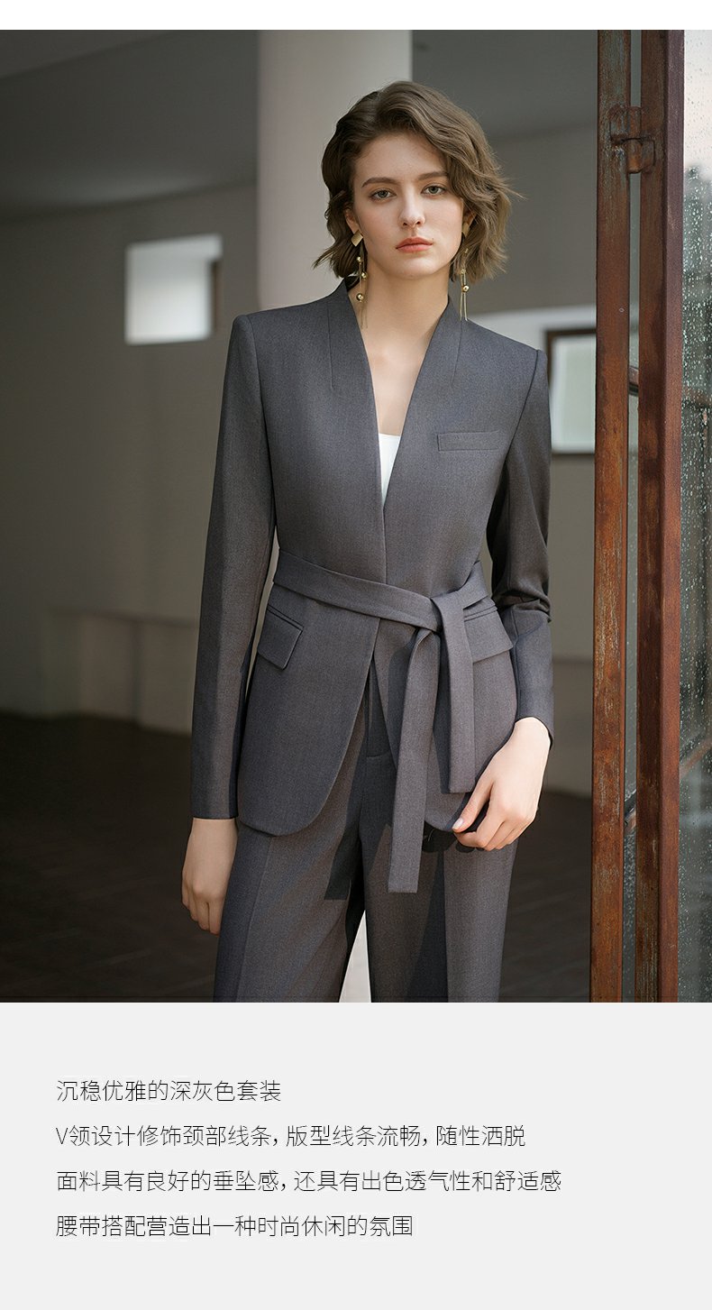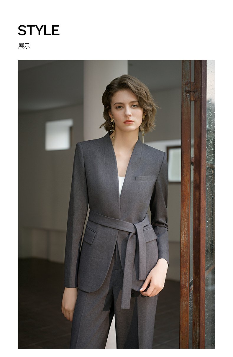 IWY/秋冬新款深灰色西装套装女系带西服外套休闲上班白领职业C14230+P34230
