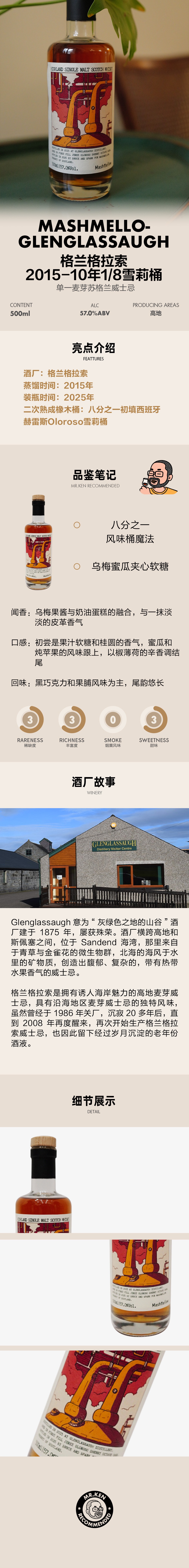 MashMellow-格兰格拉索(Glenglassaugh)2015-10年1/8Oloroso雪莉桶单一麦芽苏格兰威士忌(初八开始发货)