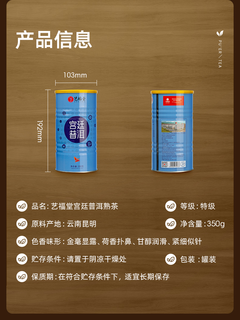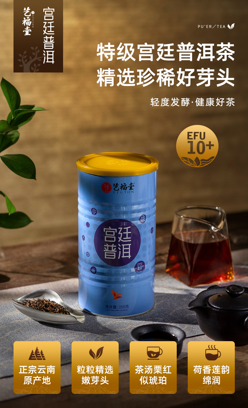 【第2件半价】艺福堂 茶叶 宫廷普洱熟茶 特级正宗云南布朗山金芽陈香 350g/罐