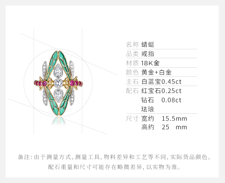 【蜻蜓】JULEE JULEE茱俪珠宝 18K黄金白蓝宝钻石 红宝石戒指