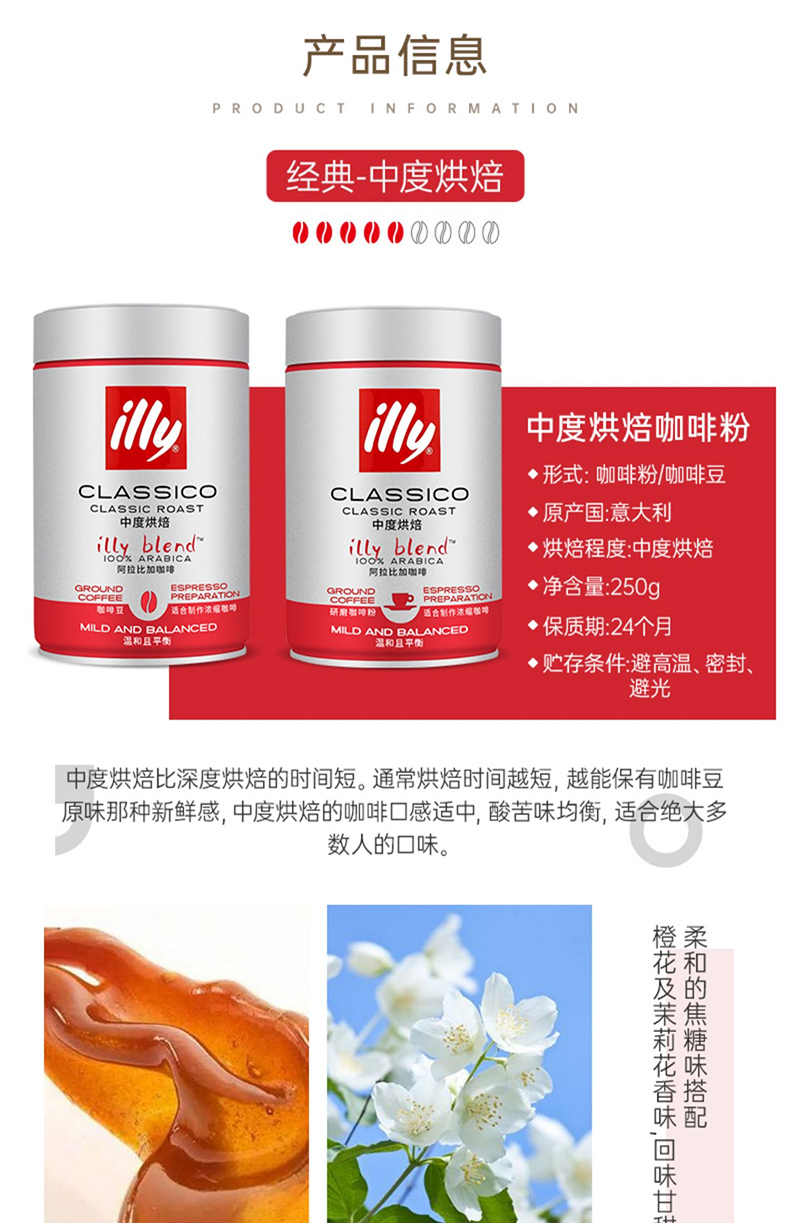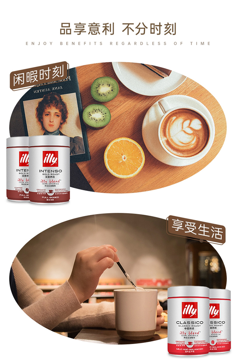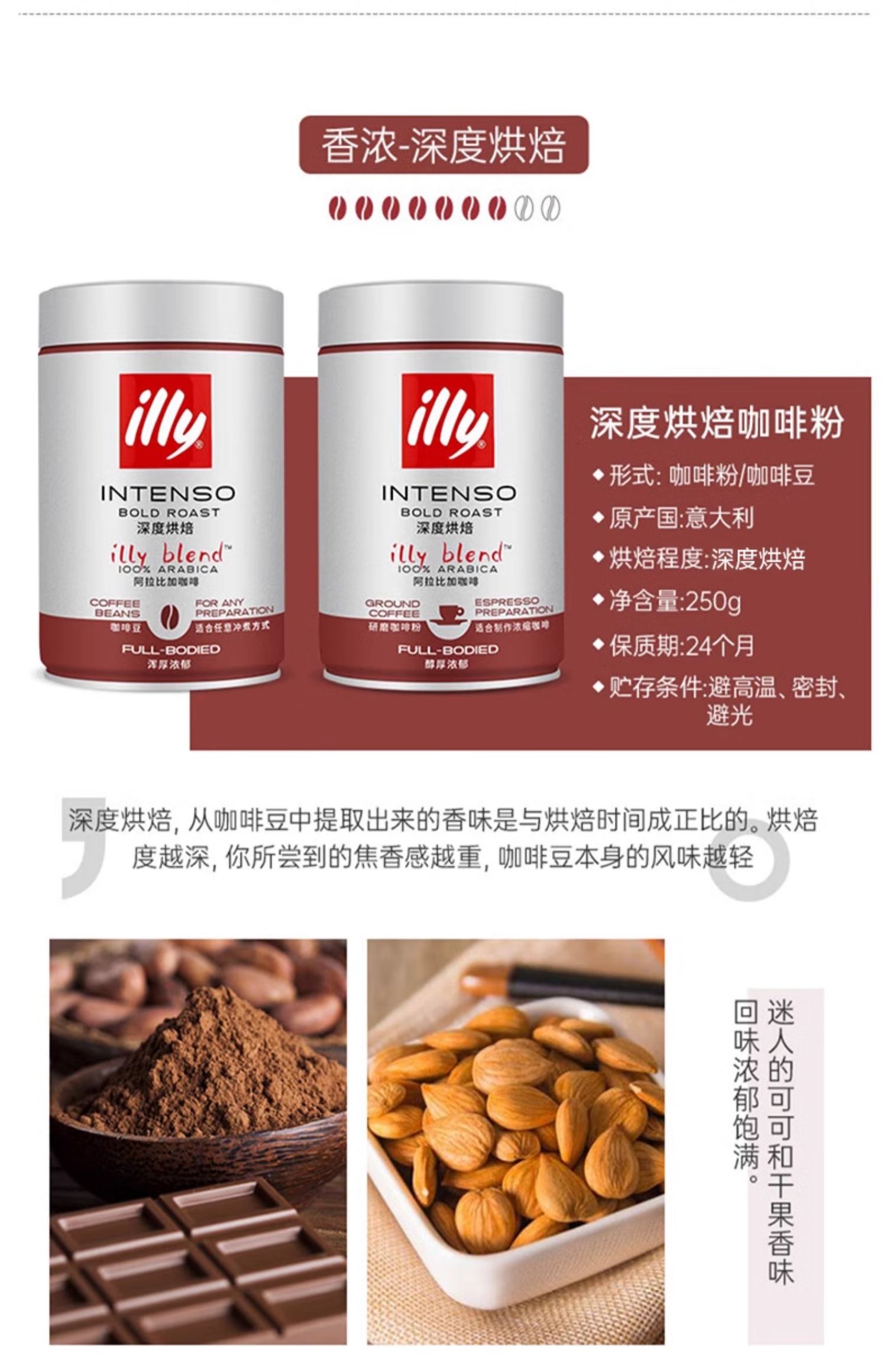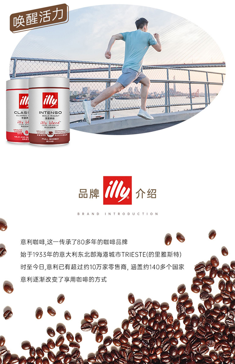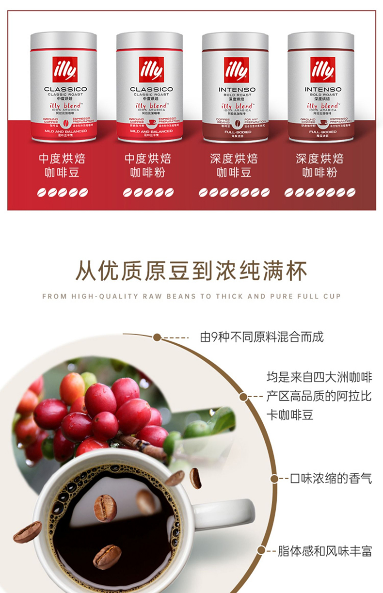 意大利illy浓缩咖啡豆250g 中焙/深焙咖啡爱好者的选择口感浓郁 023883/023884