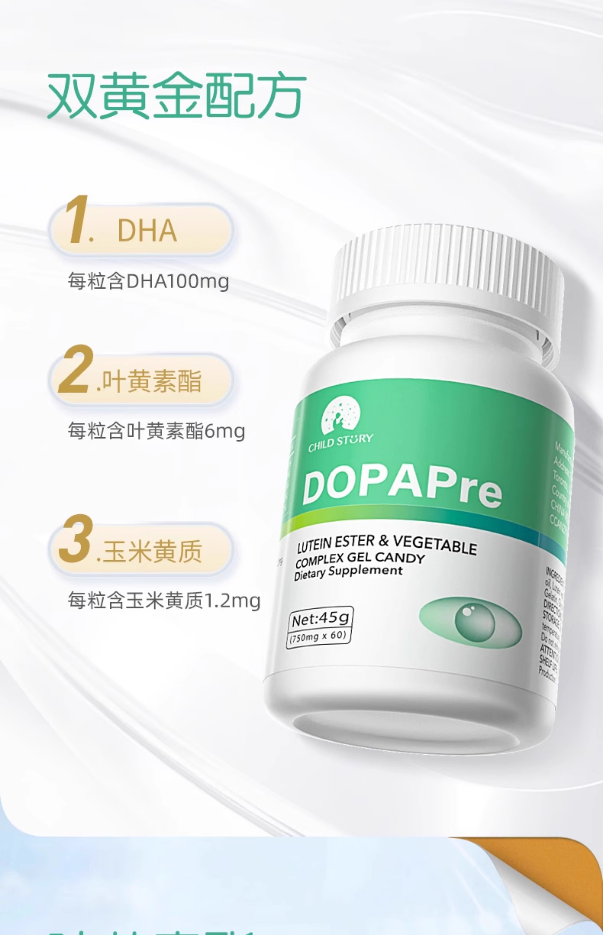 童年故事叶黄素dha复合叶黄素酯凝胶糖果蓝莓叶黄素胶囊60粒