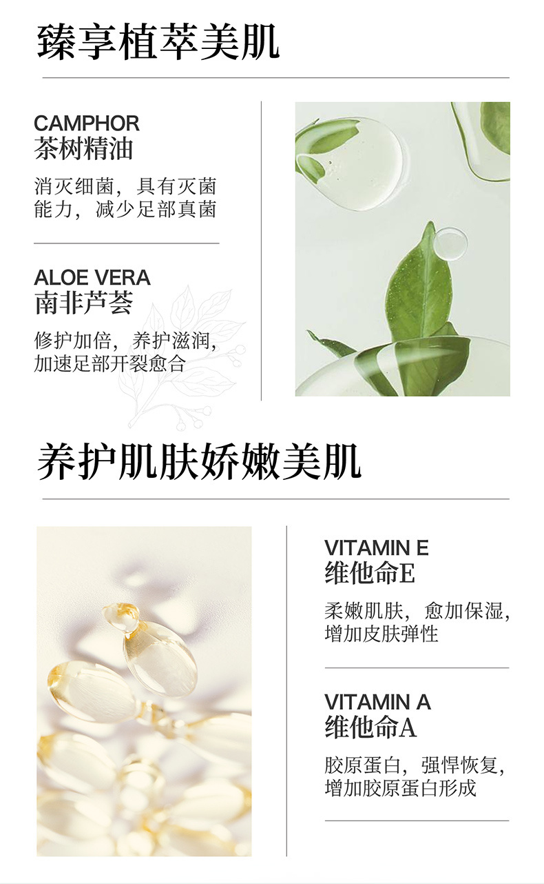 【产品特点】快速修复干裂,改善鱼鳞皮,修护倒刺起皮,软化足部角质。