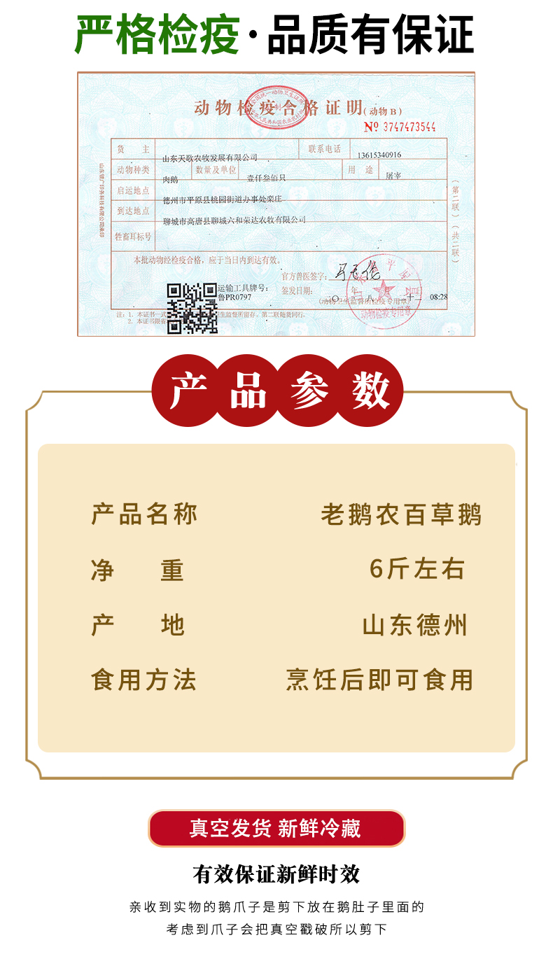 【德州平原伴手礼】老鹅农 白条鹅赠送料包 生鲜产品 散养大鹅 肉质劲道
