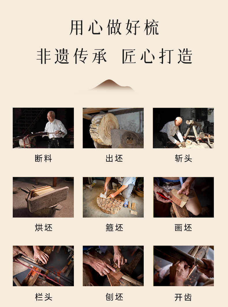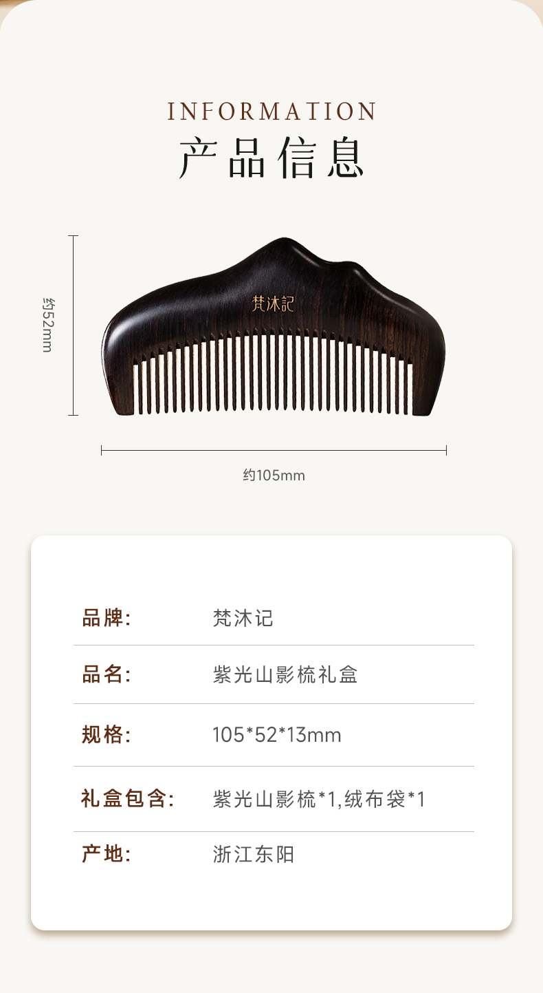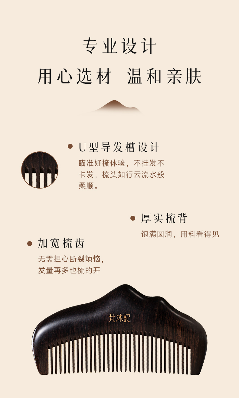 梵沐记紫光檀山影梳