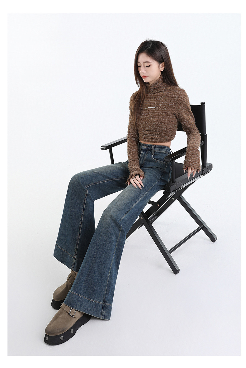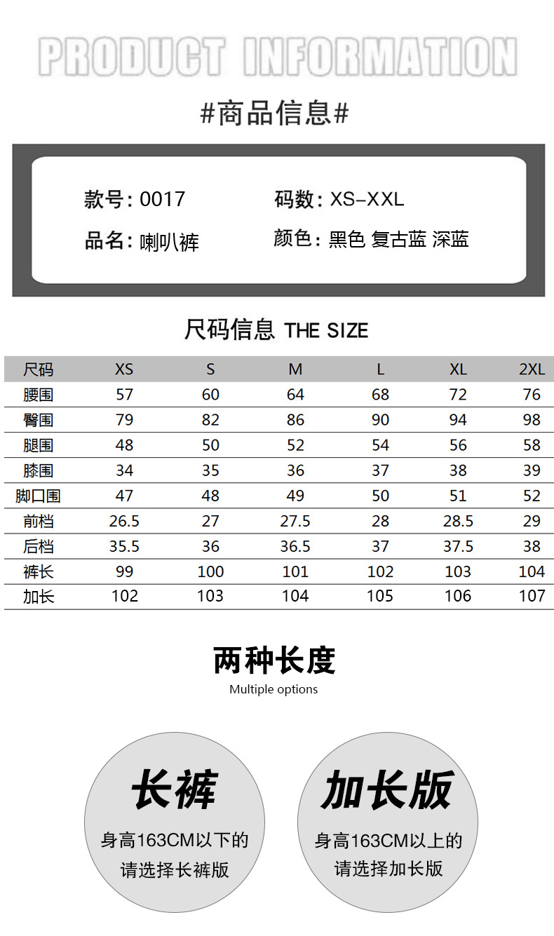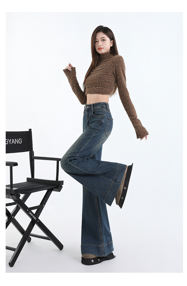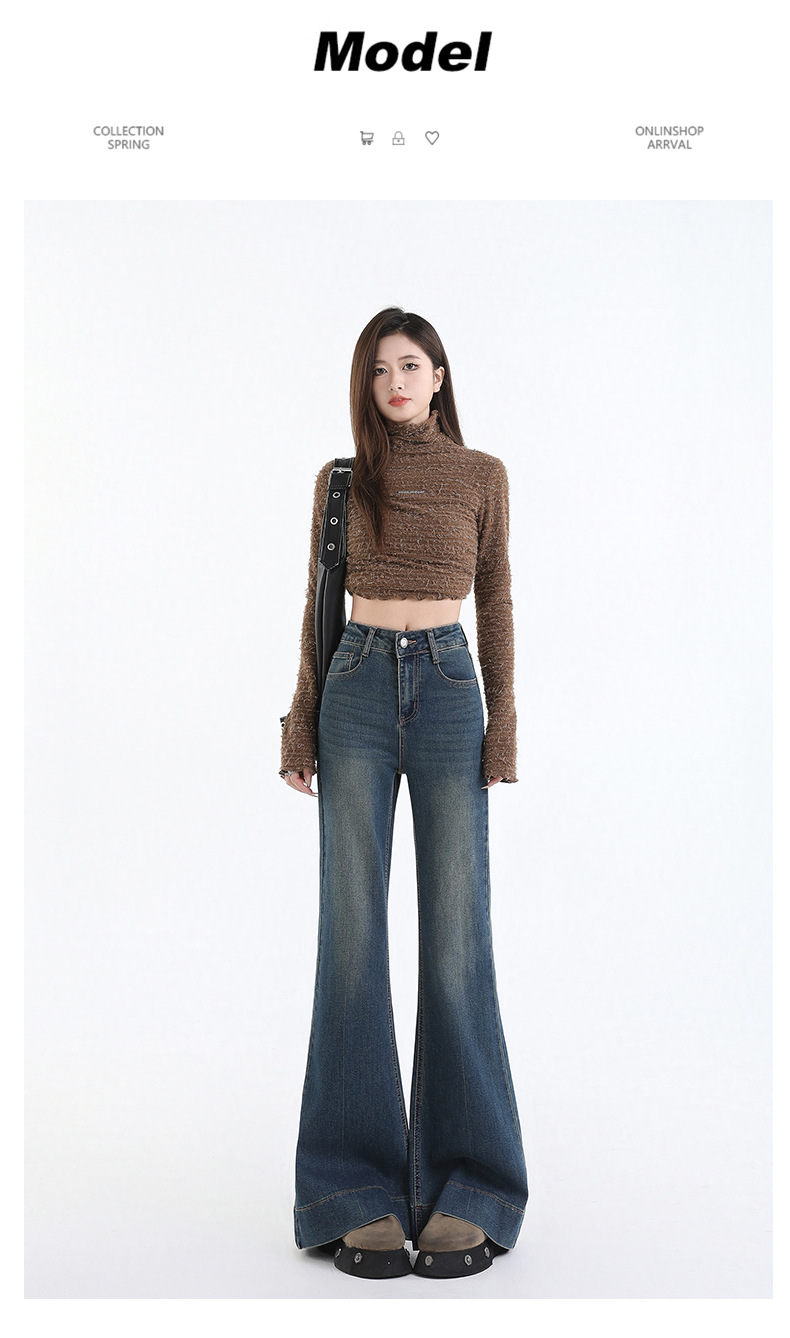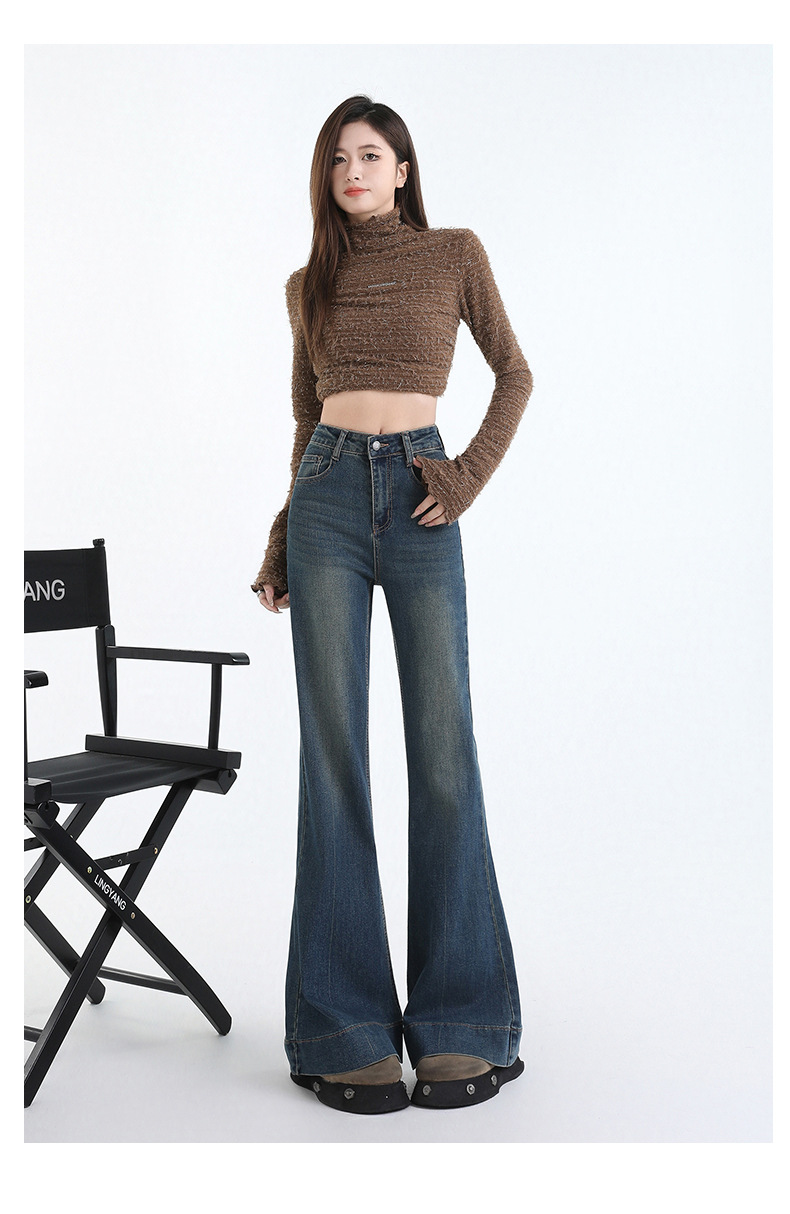【美式复古蓝色加长喇叭裤】春秋高腰宽松修身显瘦微喇牛仔裤