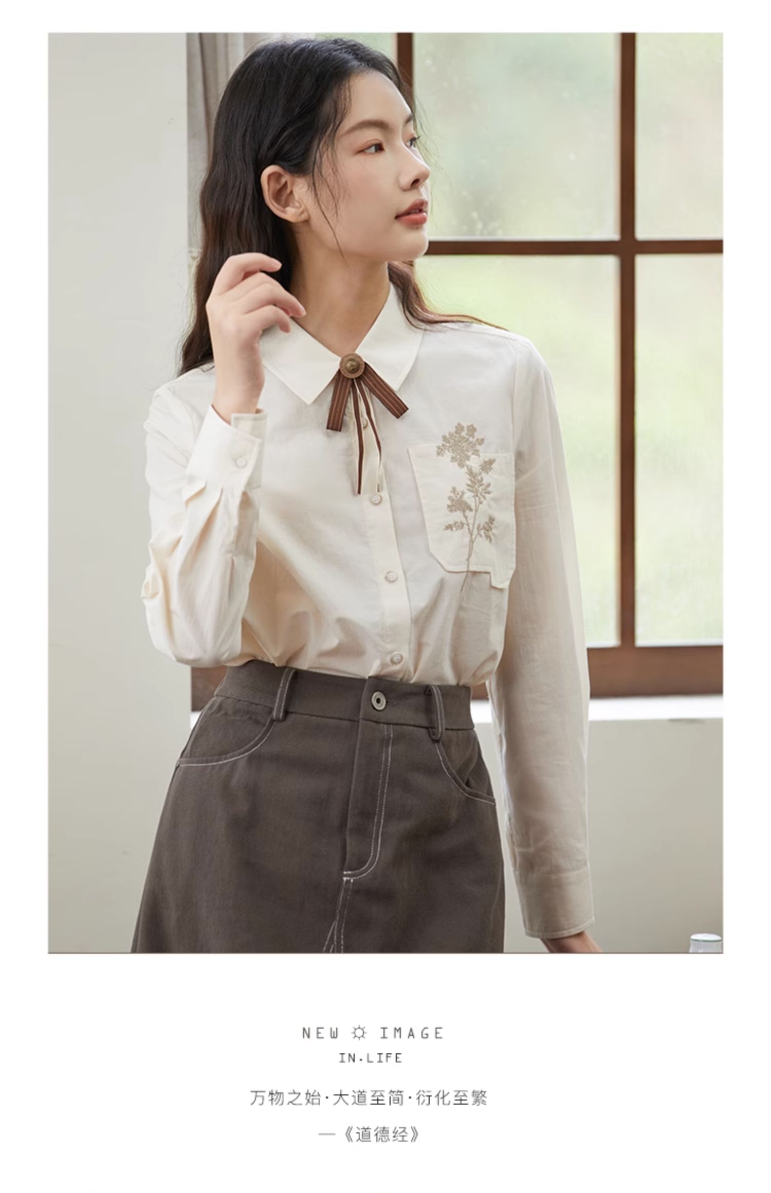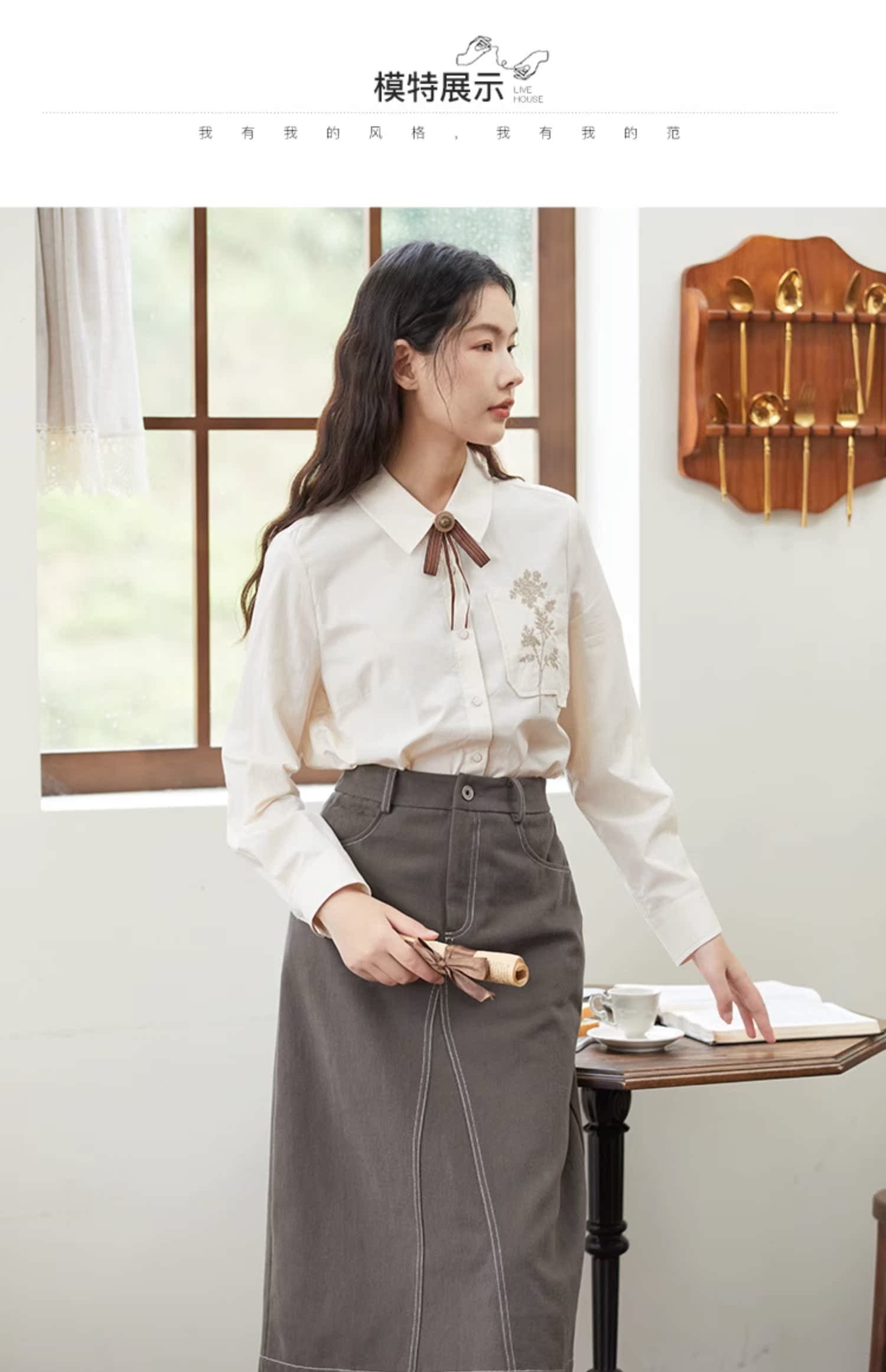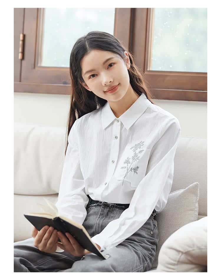 Famecoco范可儿原创绣花全棉衬衫女士秋季长袖白衬衣