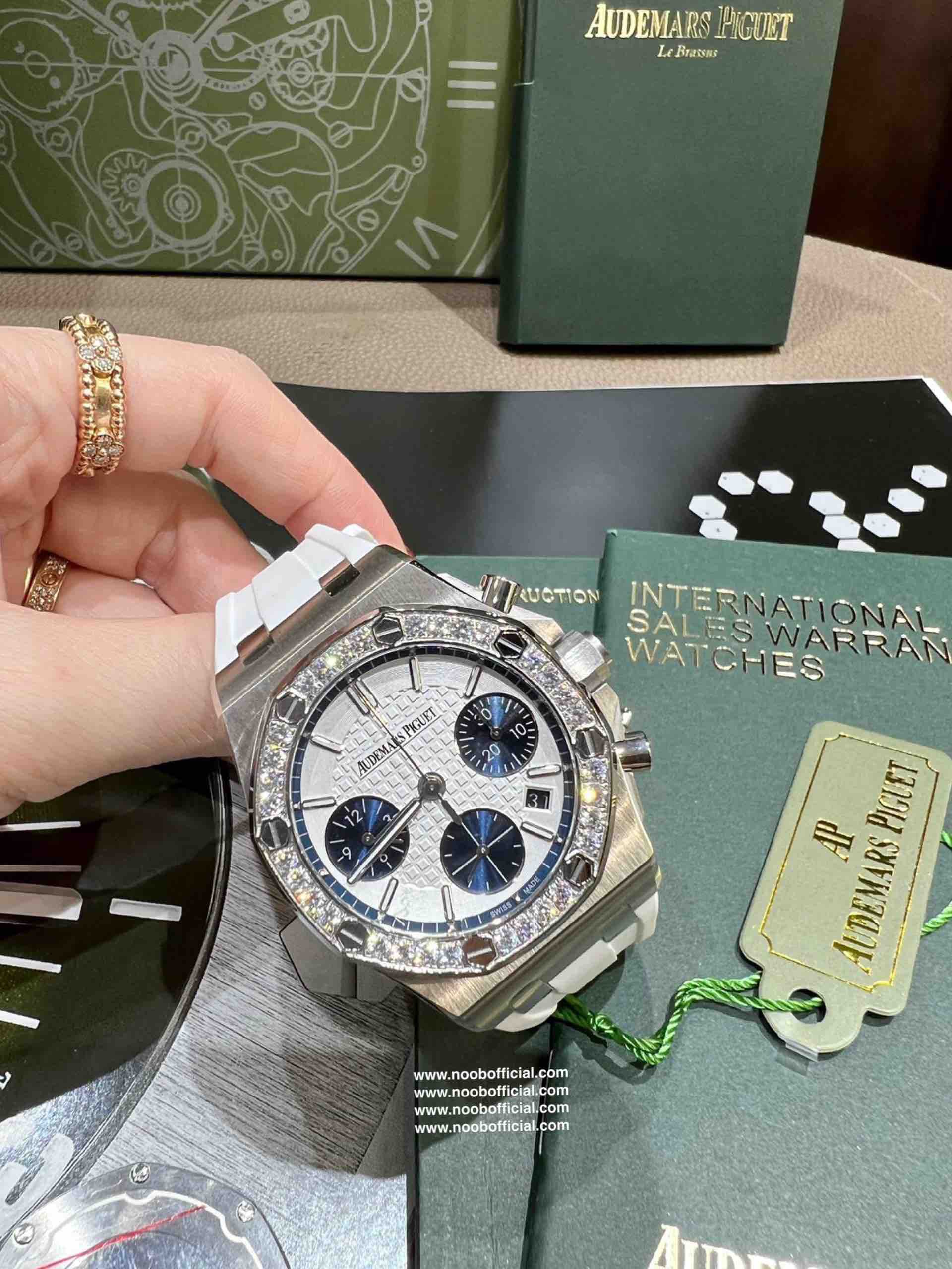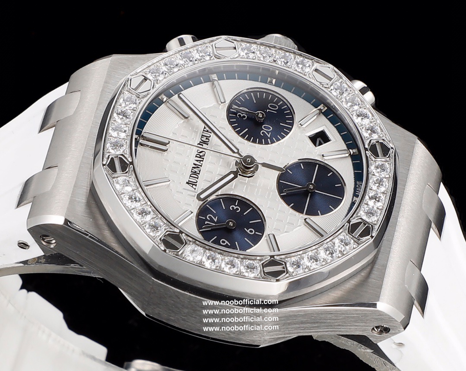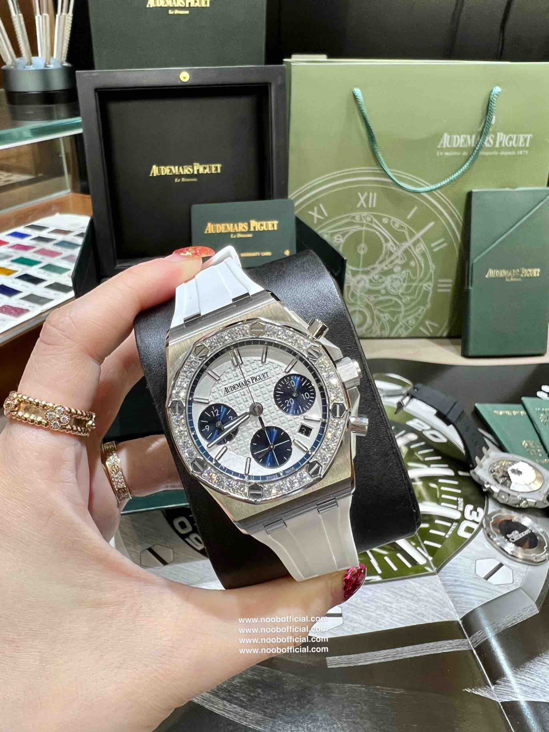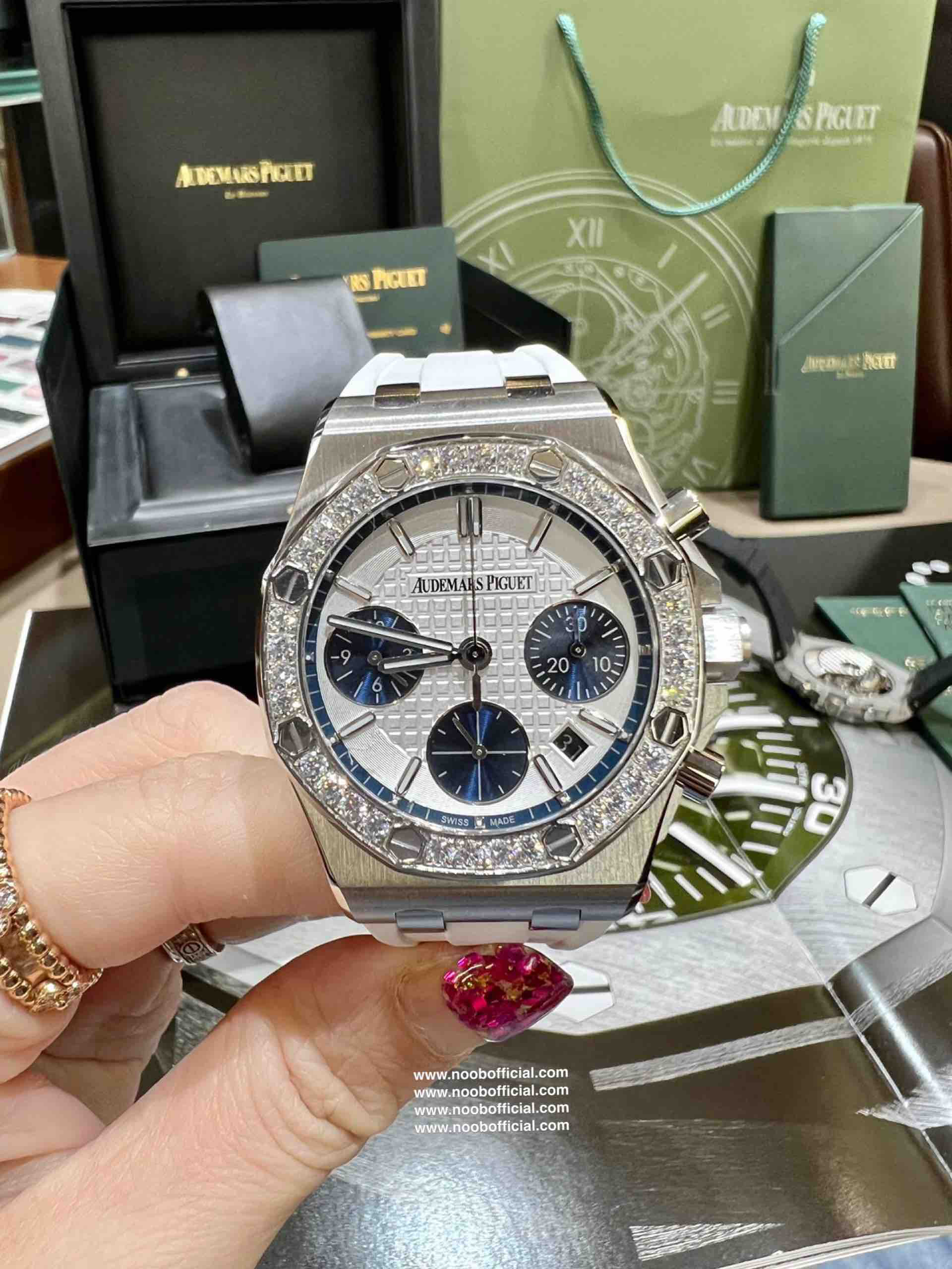 新款AP爱彼Audemars Piguet 皇家橡树中性款多功能计时机械腕表 专柜尺寸41和37mm【圈口】圈口采用进口钻石原装镶嵌手法【把头】表冠采用六边形精钢材质,顶端采用拉丝打磨技术