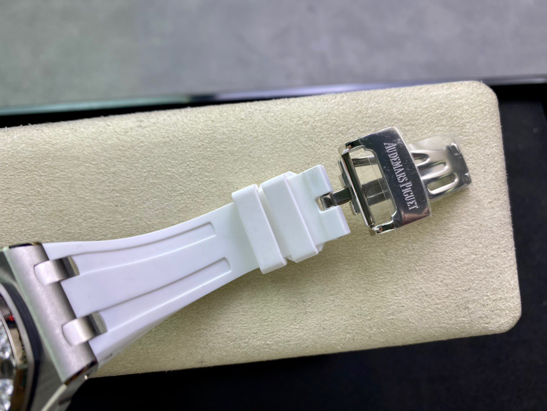 新款AP爱彼Audemars Piguet 皇家橡树中性款多功能计时机械腕表 专柜尺寸41和37mm【圈口】圈口采用进口钻石原装镶嵌手法【把头】表冠采用六边形精钢材质,顶端采用拉丝打磨技术【机芯】7750改原装机芯 6字位小秒 功能与原装一致【表镜】表镜选用进口蓝宝石玻璃镜面【表壳】采用进口316精钢表壳 【表带】搭配进口开模氟橡胶表带【表扣】原装折叠扣【头粒】头粒设计与专柜一致可以微调 佩戴更佳贴手舒适 必备 经过多道工序的打磨和磨砂处理,终把AP特有的八角型表圈表达出棱角分明的线条