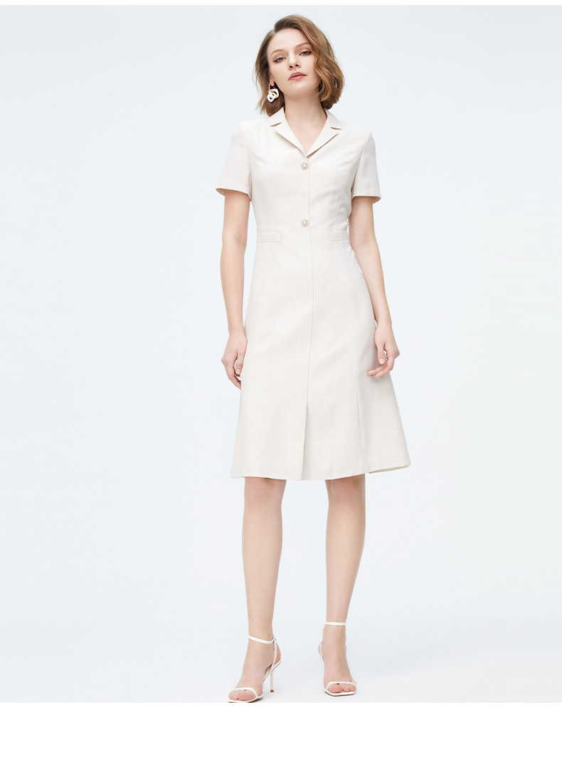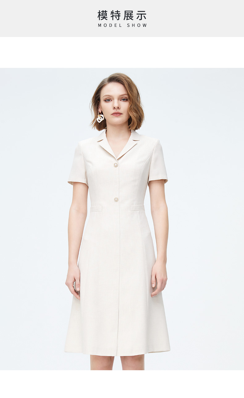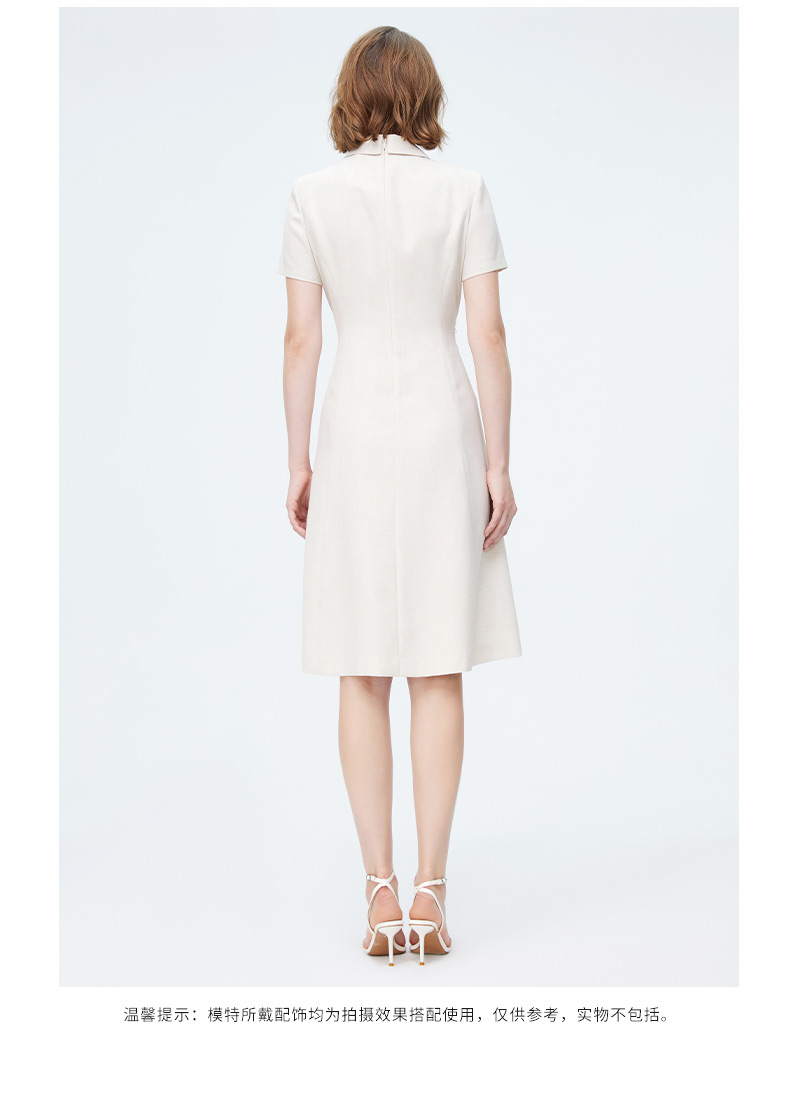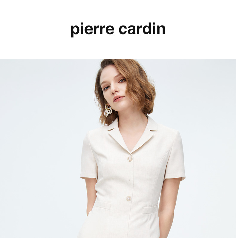 皮尔卡丹女装连衣裙商务浅米短袖高级感通勤OLA字裙P4219D4098M1