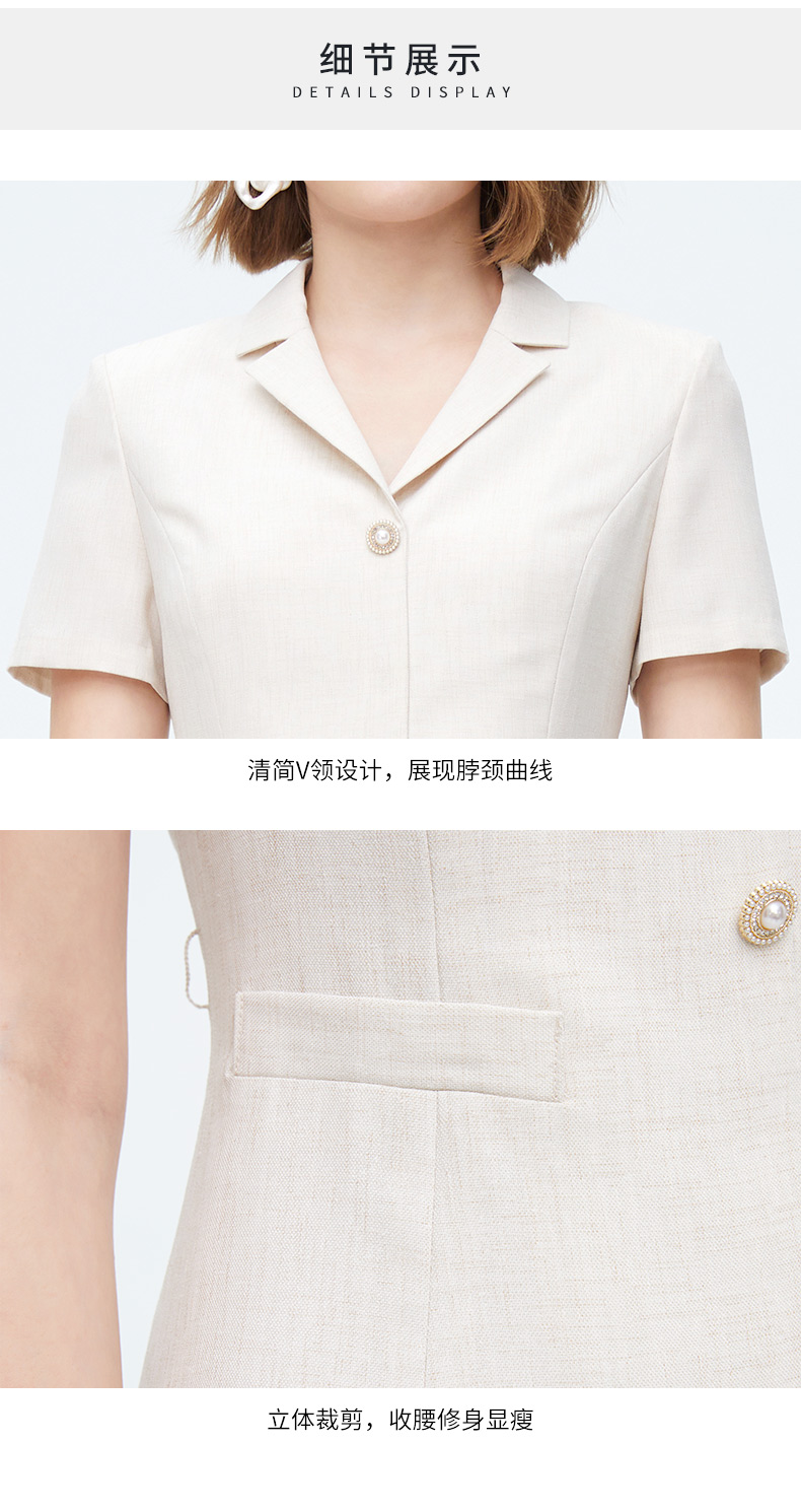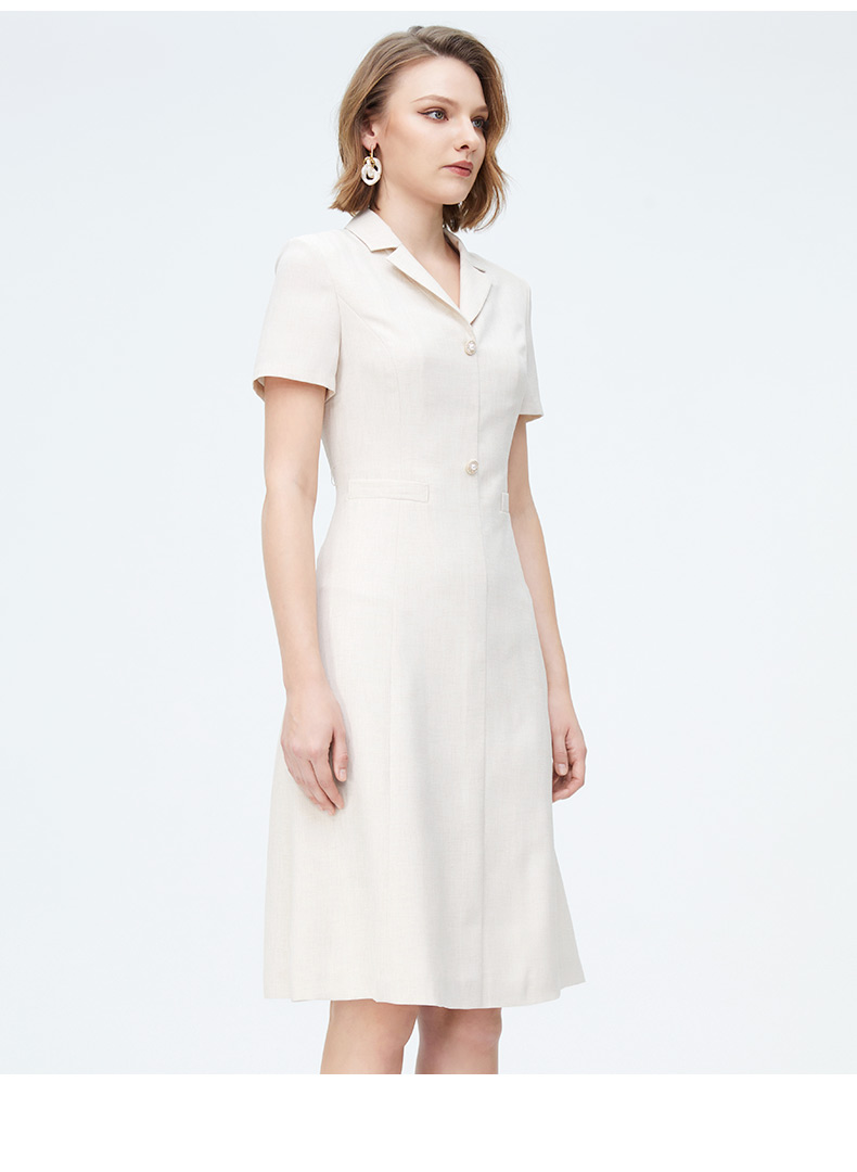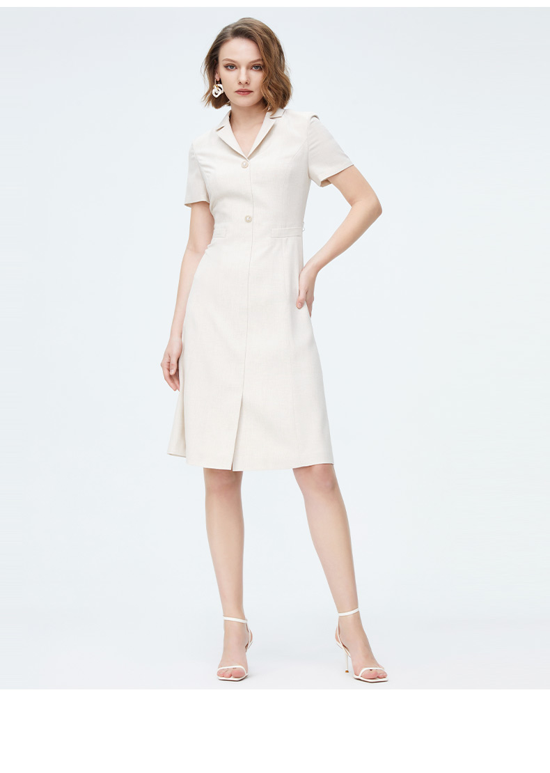 皮尔卡丹女装连衣裙商务浅米短袖高级感通勤OLA字裙P4219D4098M1