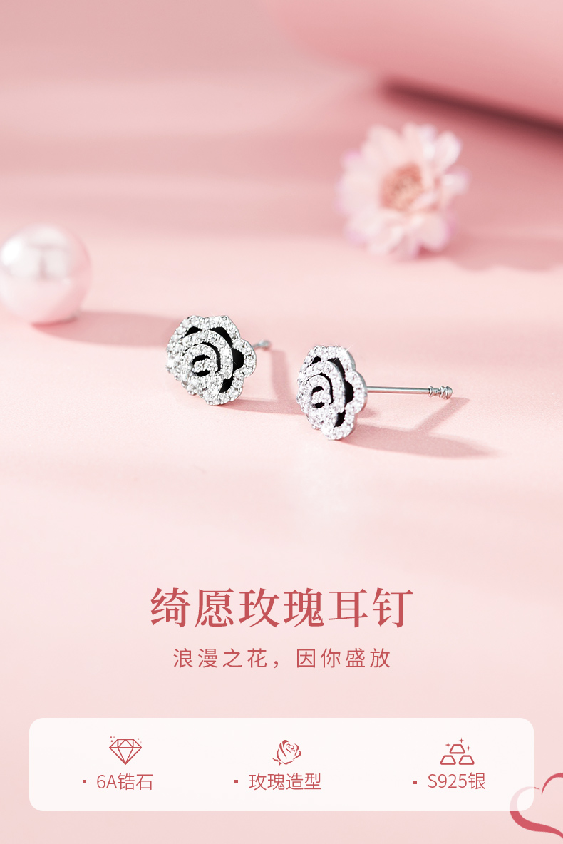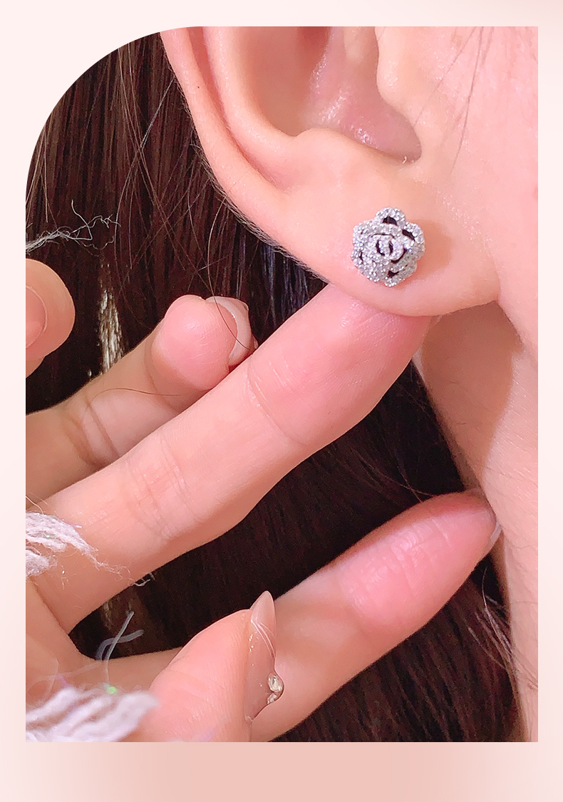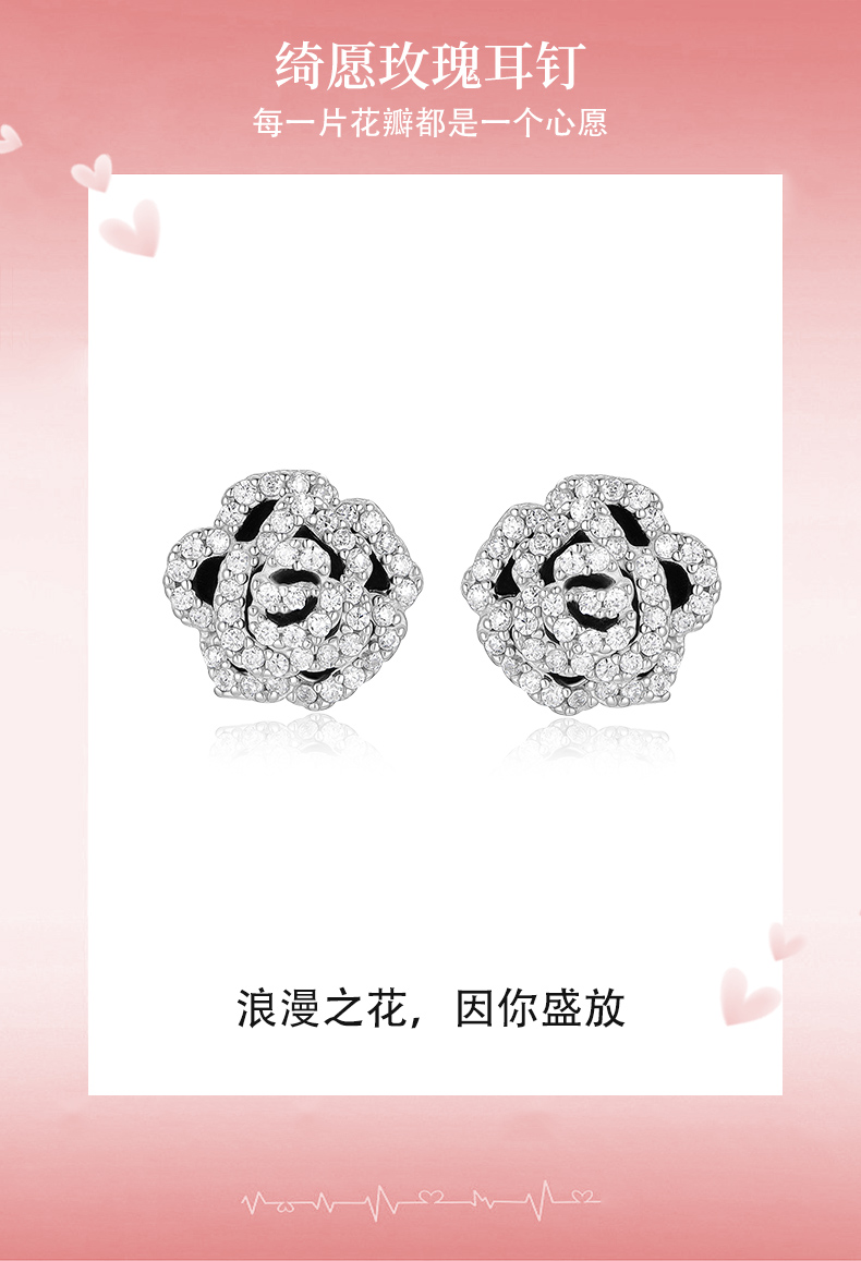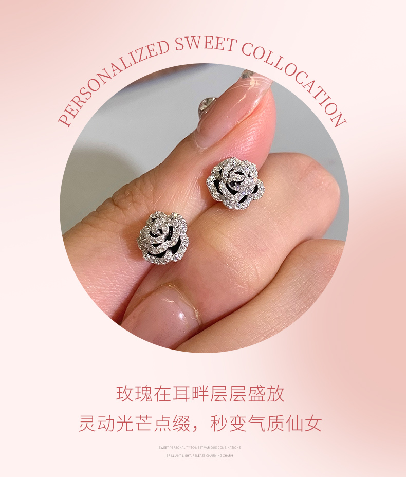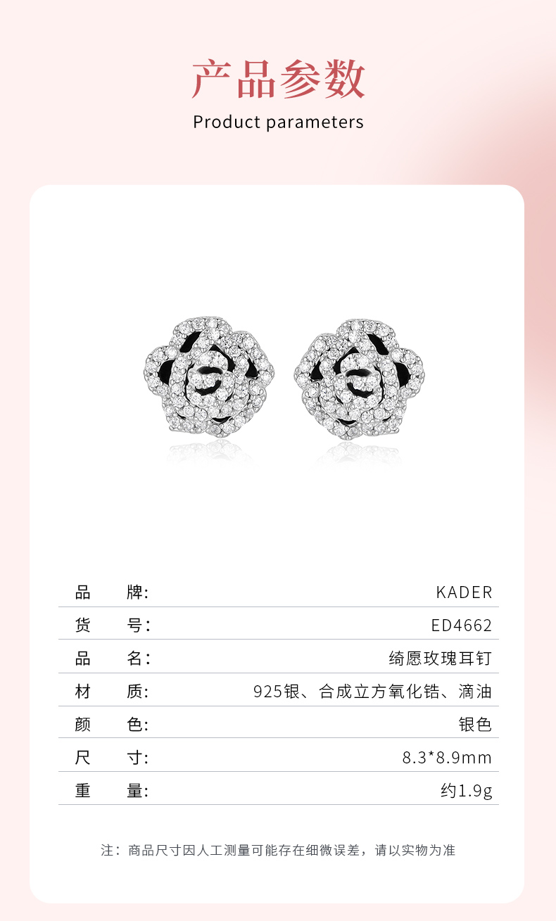 卡蒂罗KADER 绮愿玫瑰耳钉 法式小香风复古黑色满镶闪锆山茶花轻奢气质高级感ins风耳饰 灵动光芒闪耀吸睛