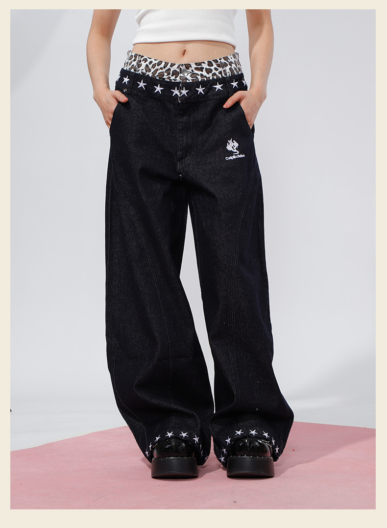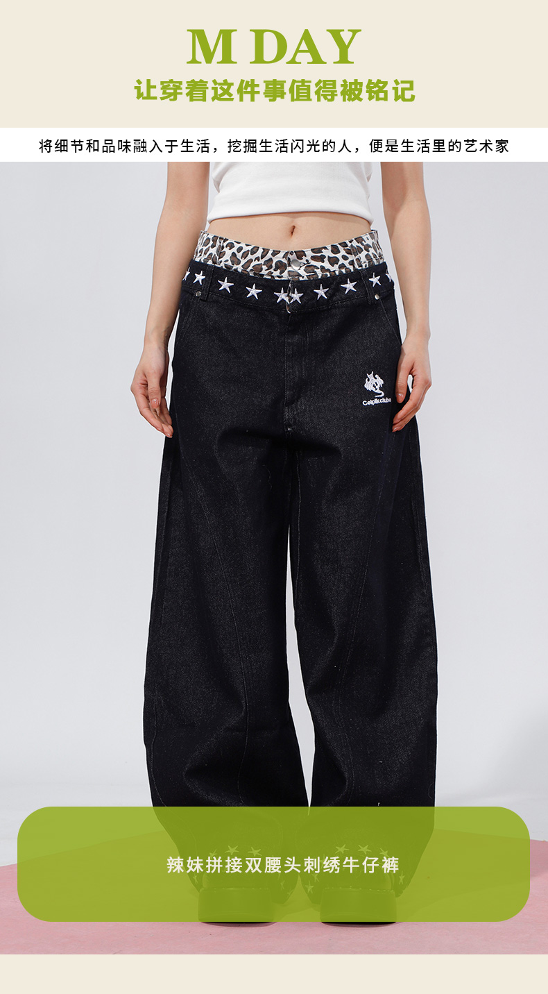 辣妹拼接双腰头刺绣牛仔裤-纪念日百货门店同款169262604