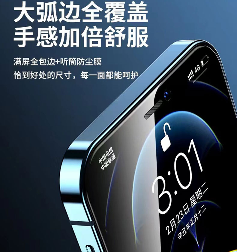 高铝防尘全屏钢化膜高铝全屏覆盖1比1高清适用于苹果14 13 12 11