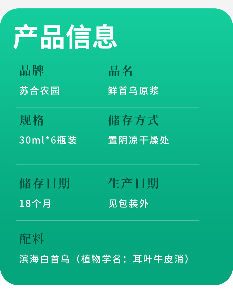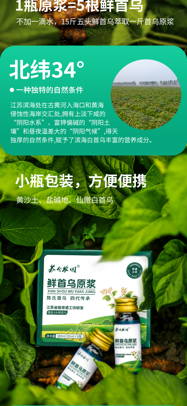 12盒减280元【鲜首乌原浆】非遗工坊 古法技艺 四代传承 精选5头鲜滨海白首乌 草本萃取(30ml*6瓶)/盒AA