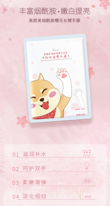 【中欧班列精选】进口美颜美烟酰胺樱花滋养汪汪长臂手膜(盒装)