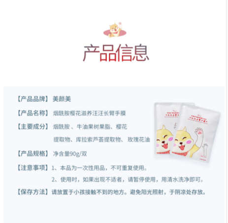 【中欧班列精选】 台湾 美颜美烟酰胺樱花滋养汪汪长臂手膜(盒装)91g/双/盒