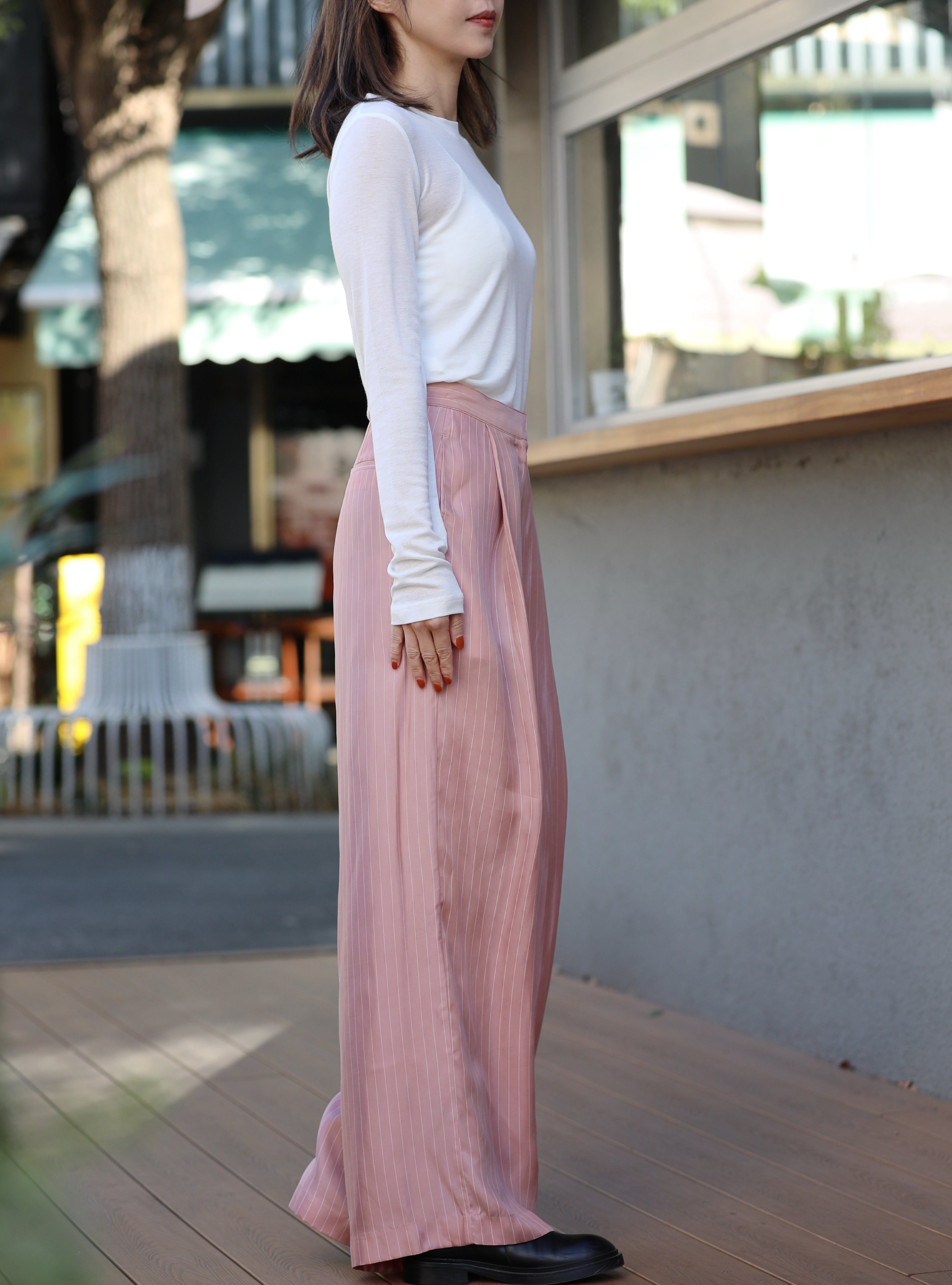 TYNVIE 栗色条纹侧袋欧根纱半身裙