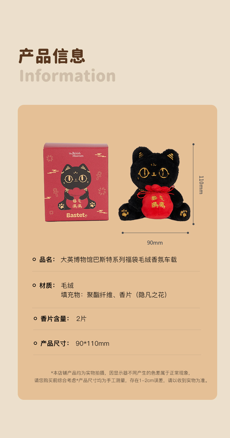大英博物馆巴斯特车载香薰福袋香氛挂件香包毛绒高级感小众礼物