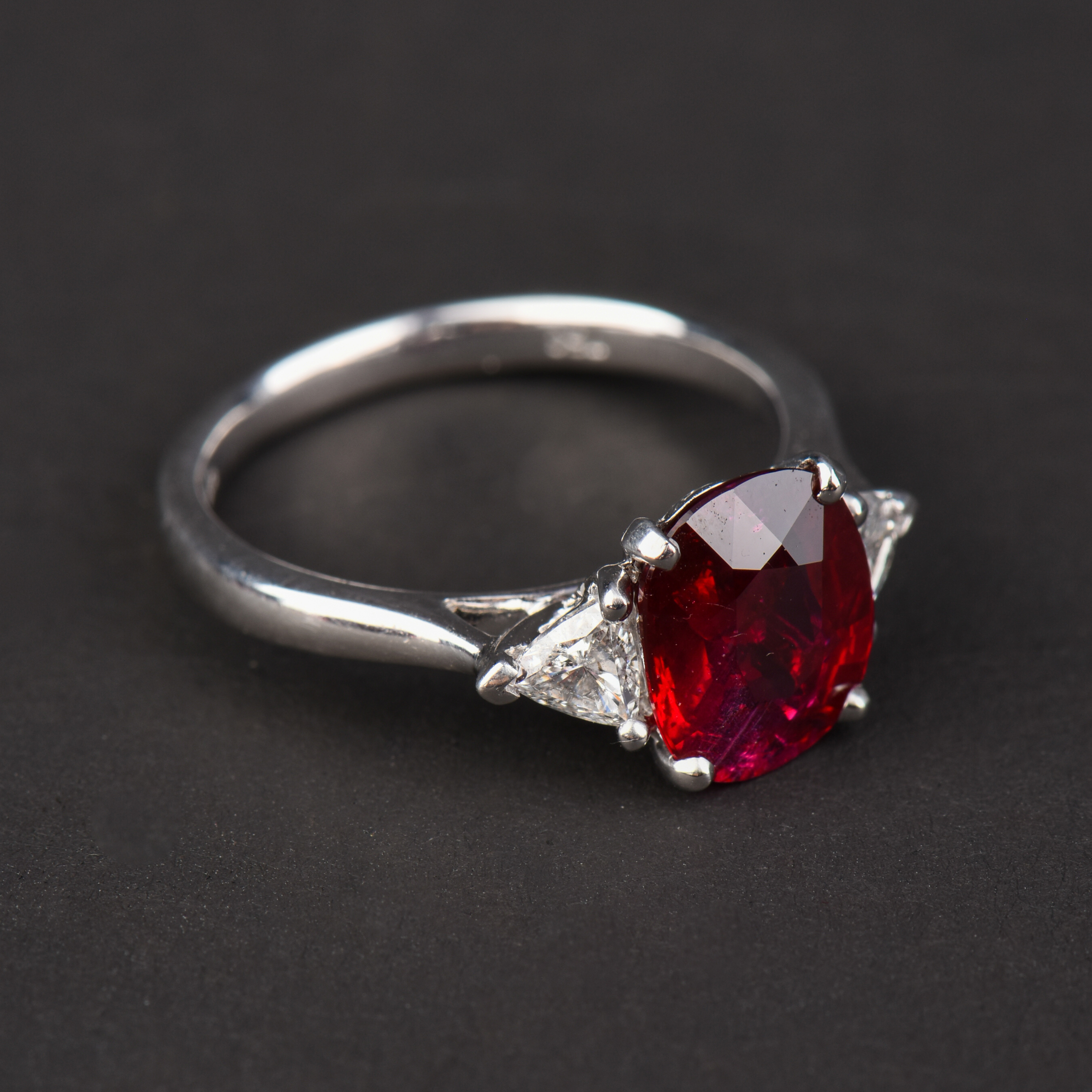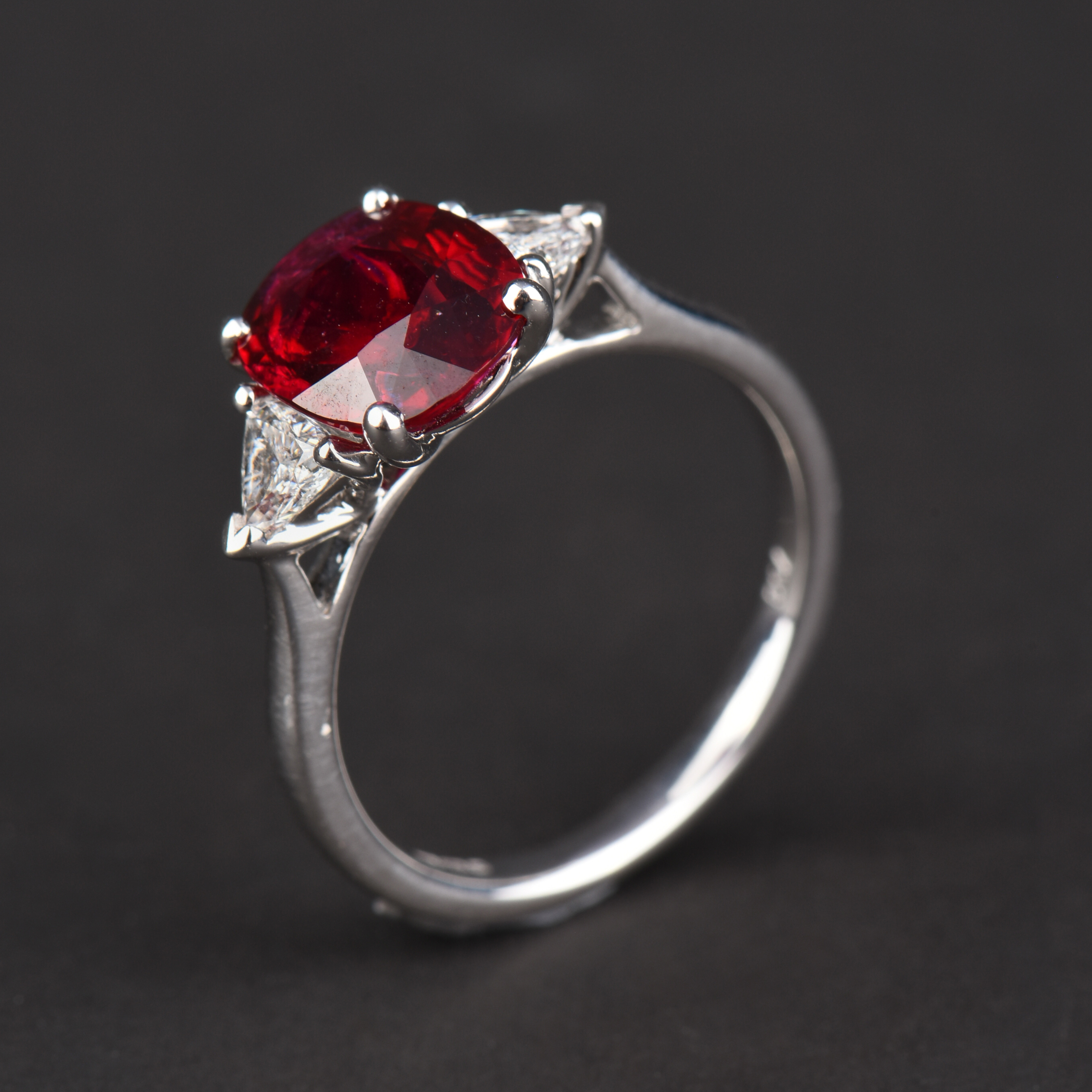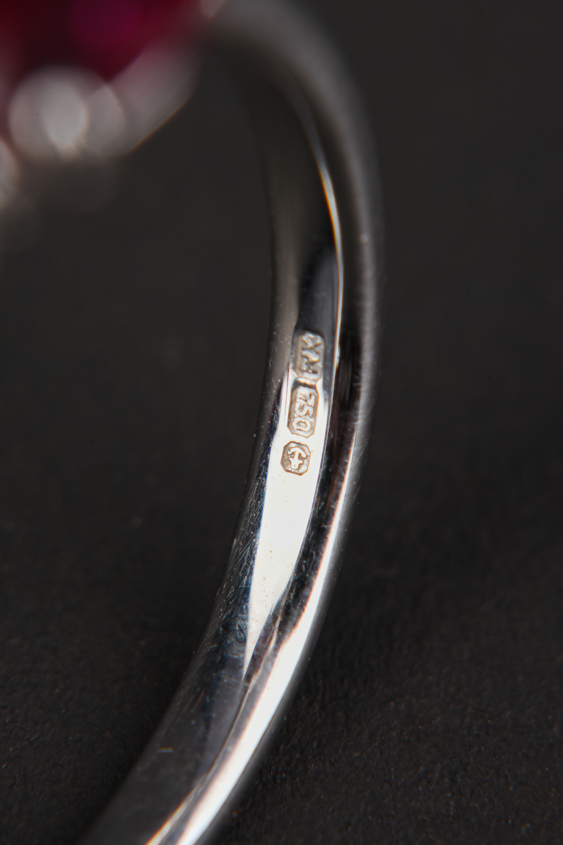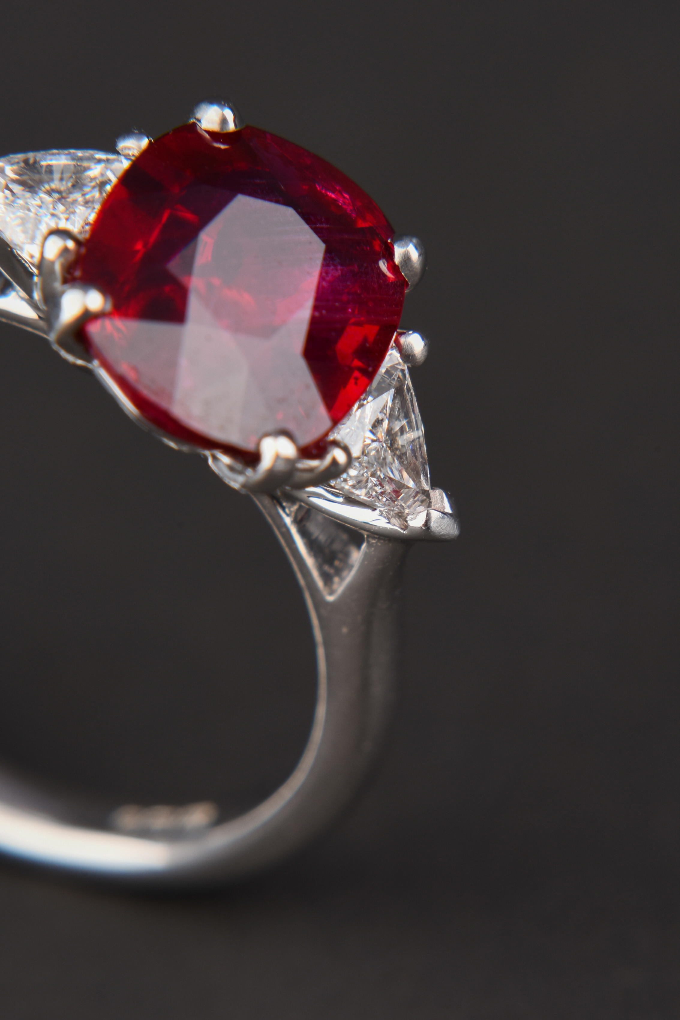 独角鹿西洋古董首饰珠宝欧洲18K白金镶嵌无烧红宝石钻石戒指