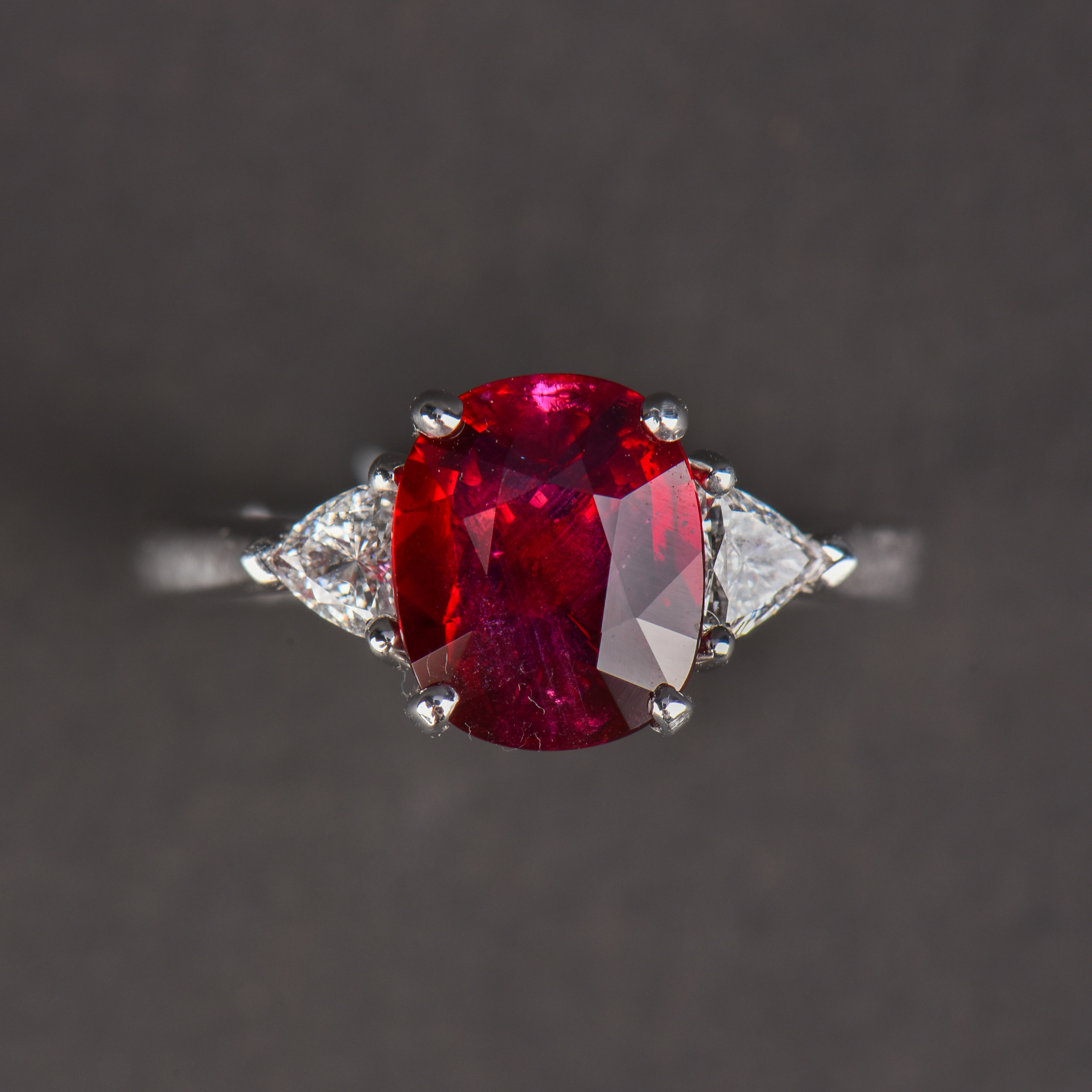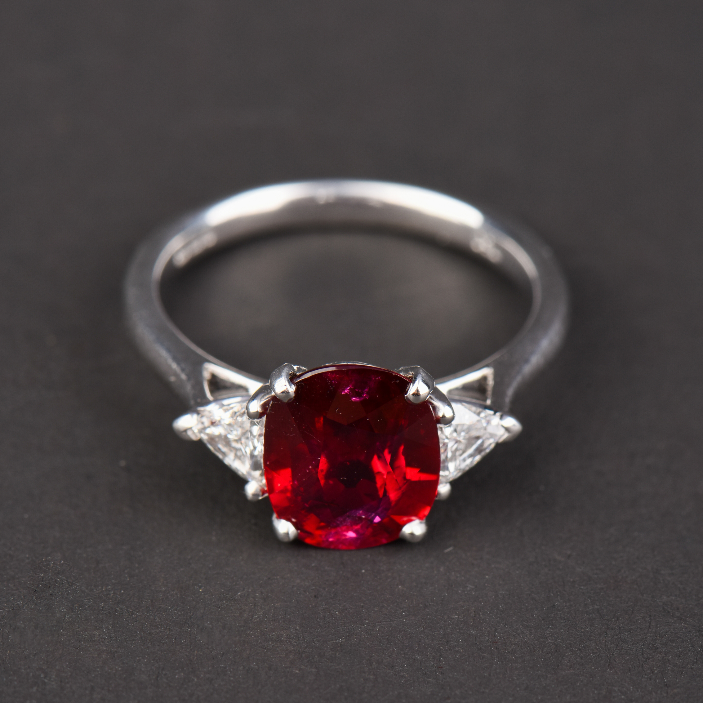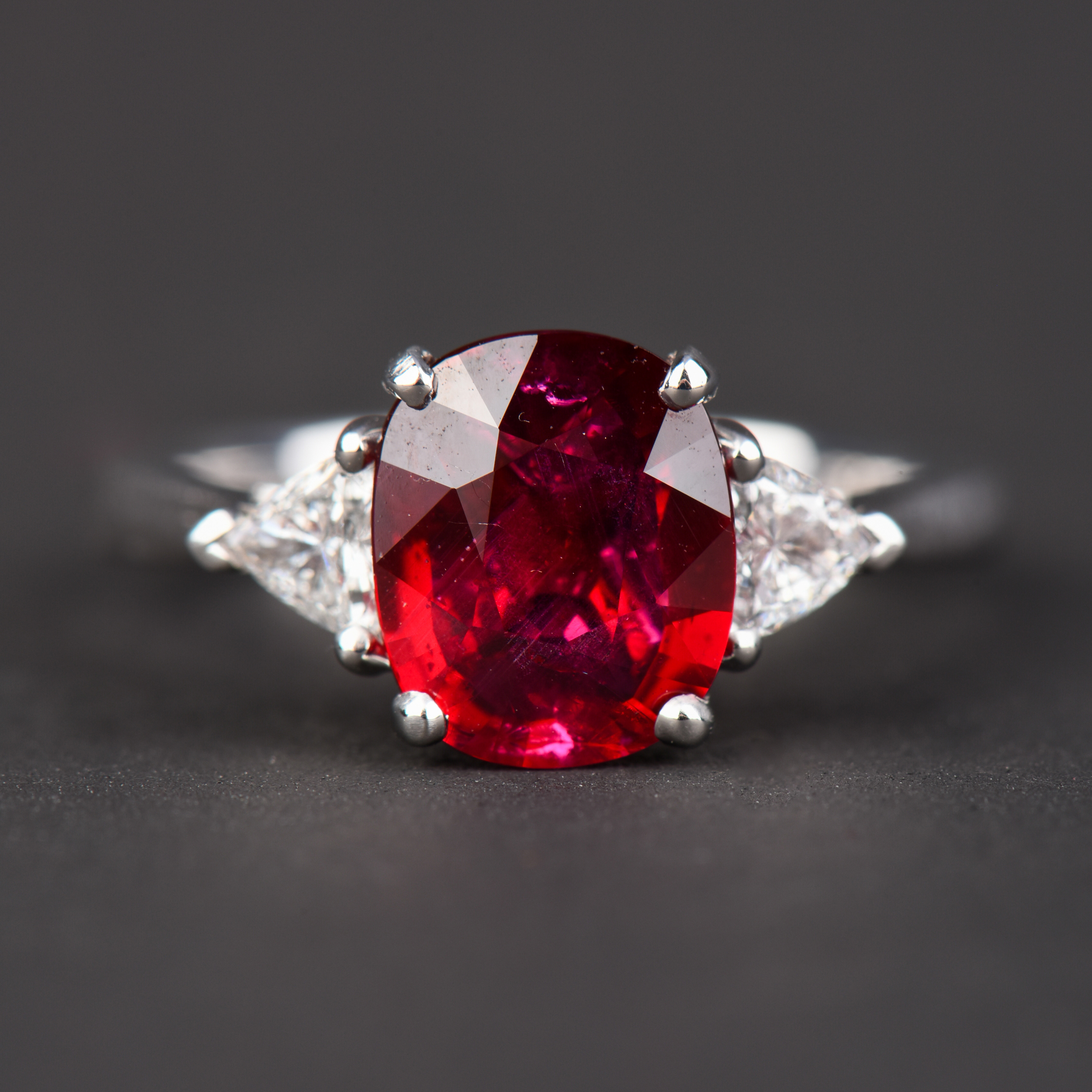 独角鹿西洋古董首饰珠宝欧洲18K白金镶嵌无烧红宝石钻石戒指