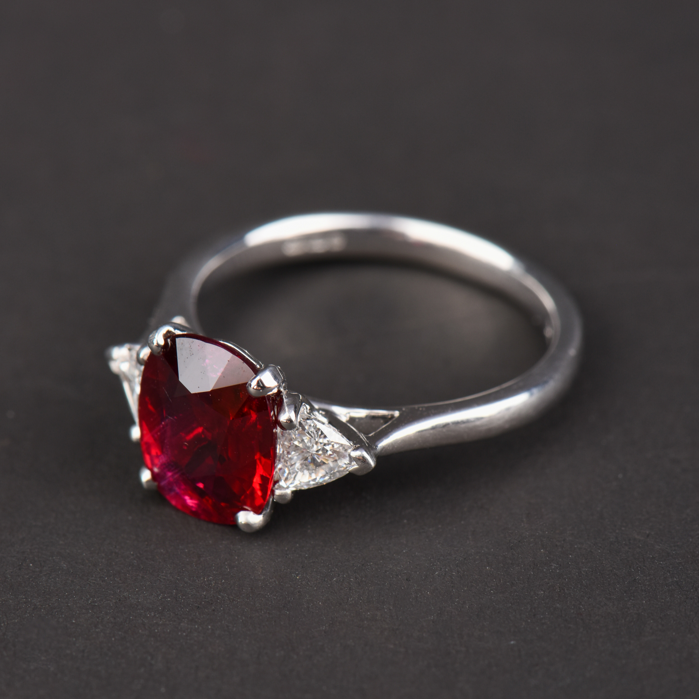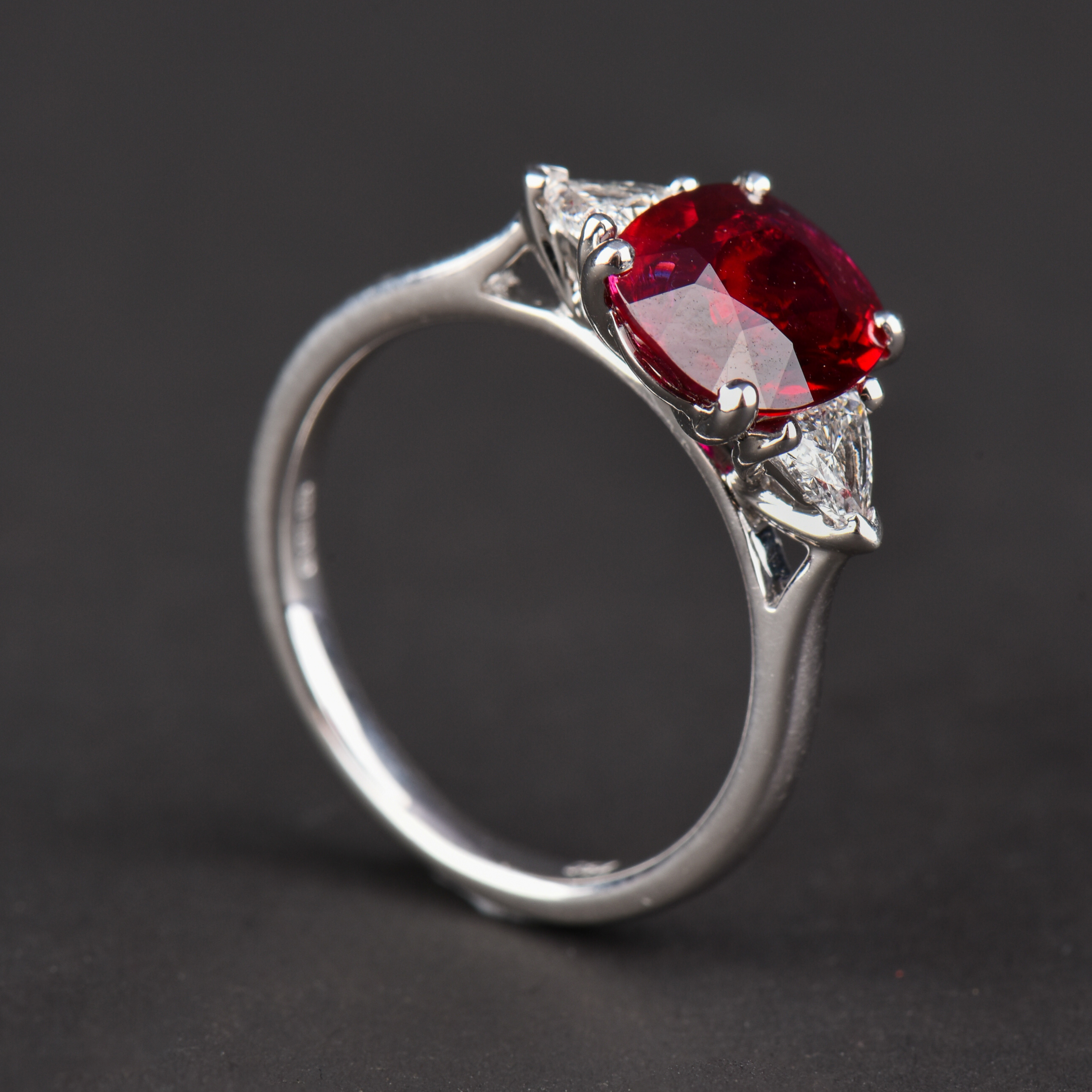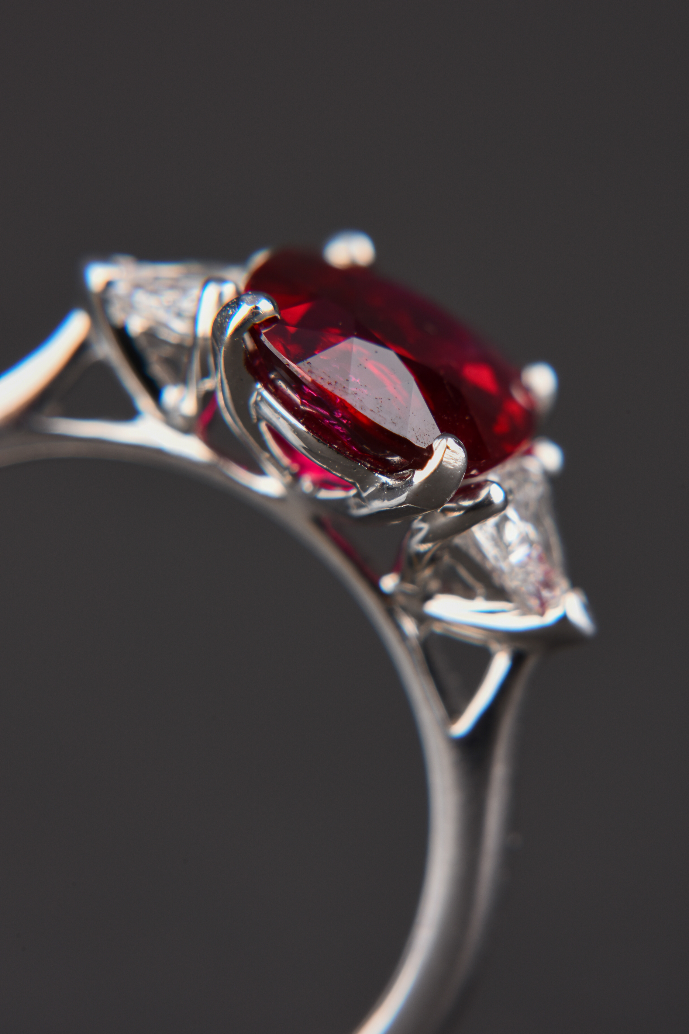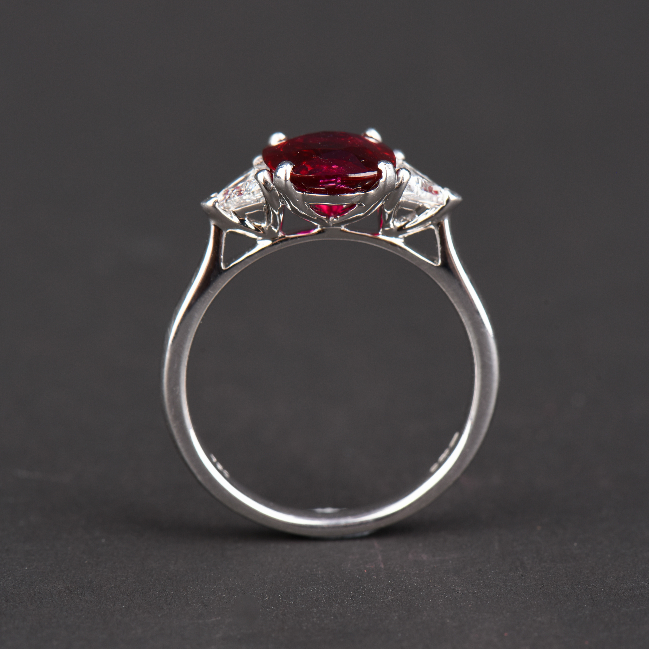 独角鹿西洋古董首饰珠宝欧洲18K白金镶嵌无烧红宝石钻石戒指