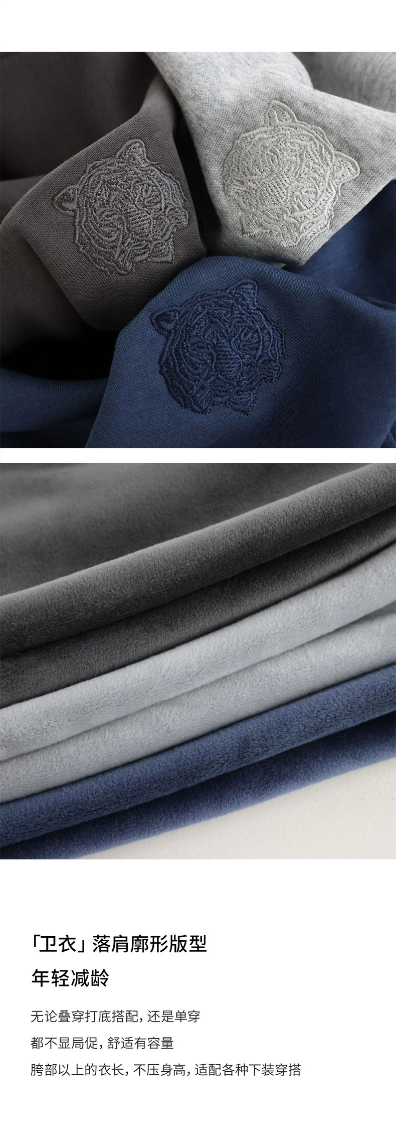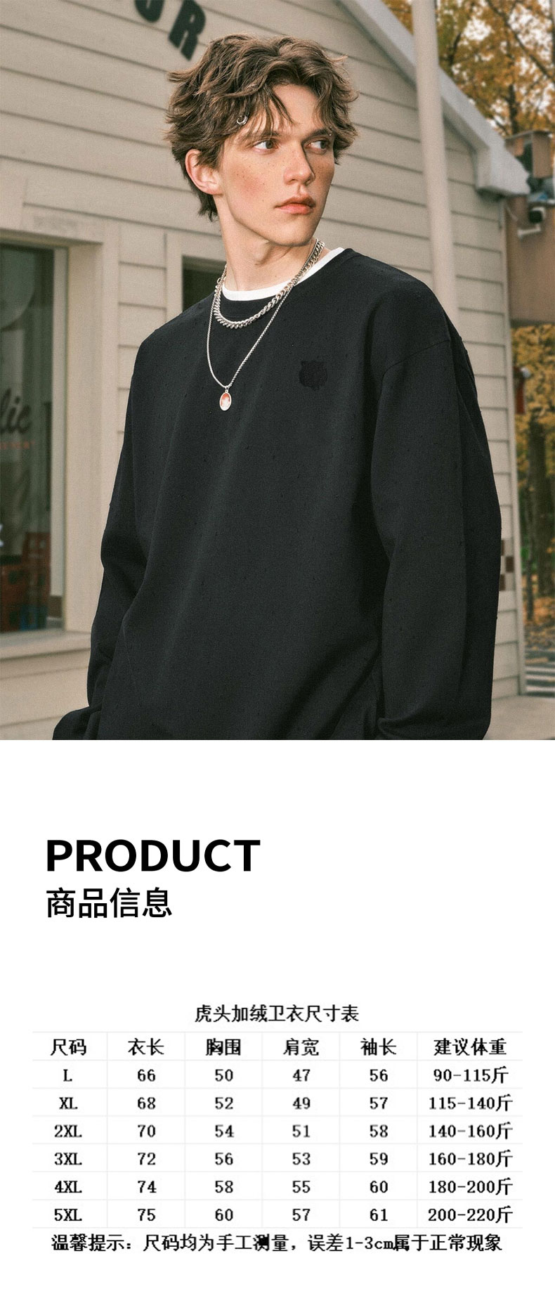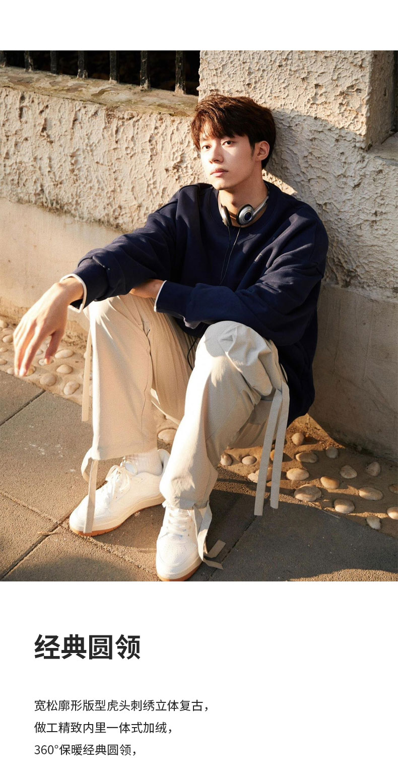 BASICLIVE 男款虎头刺绣加绒圆领卫衣 内里一体式加绒360°保暖;单穿帅气,内搭不臃肿,身材包容度高;基础色系好搭配