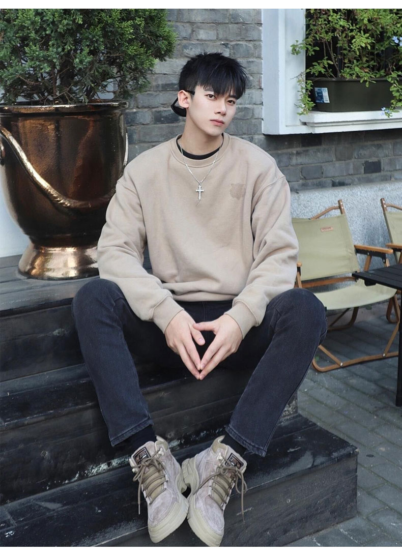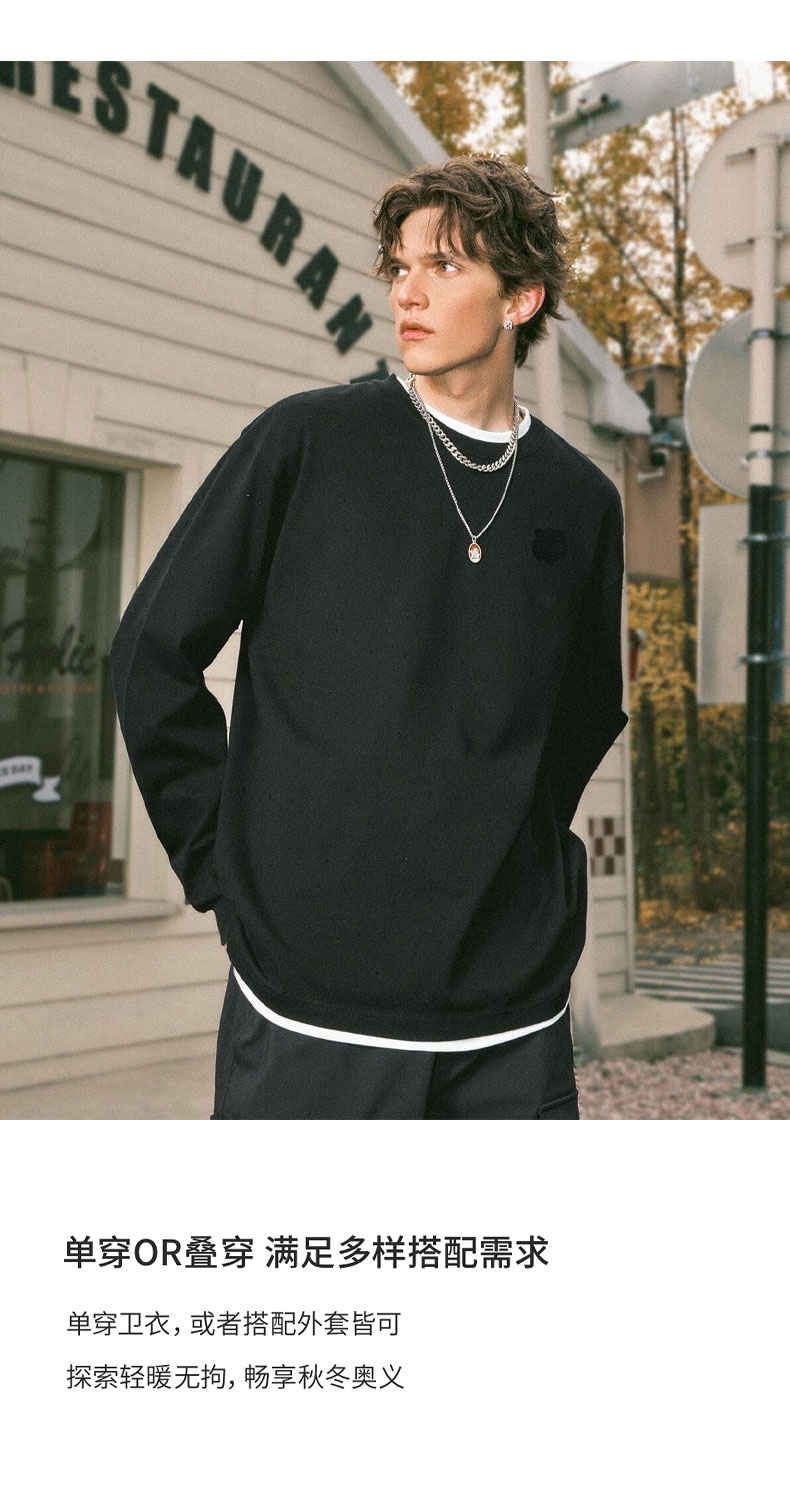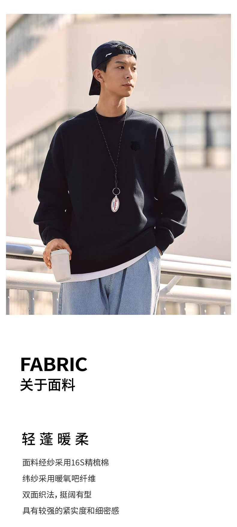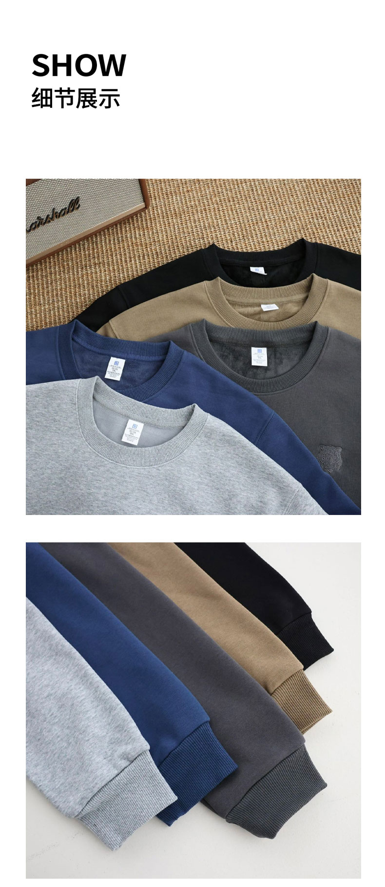 BASICLIVE 男款虎头刺绣加绒圆领卫衣 内里一体式加绒360°保暖;单穿帅气,内搭不臃肿,身材包容度高;基础色系好搭配
