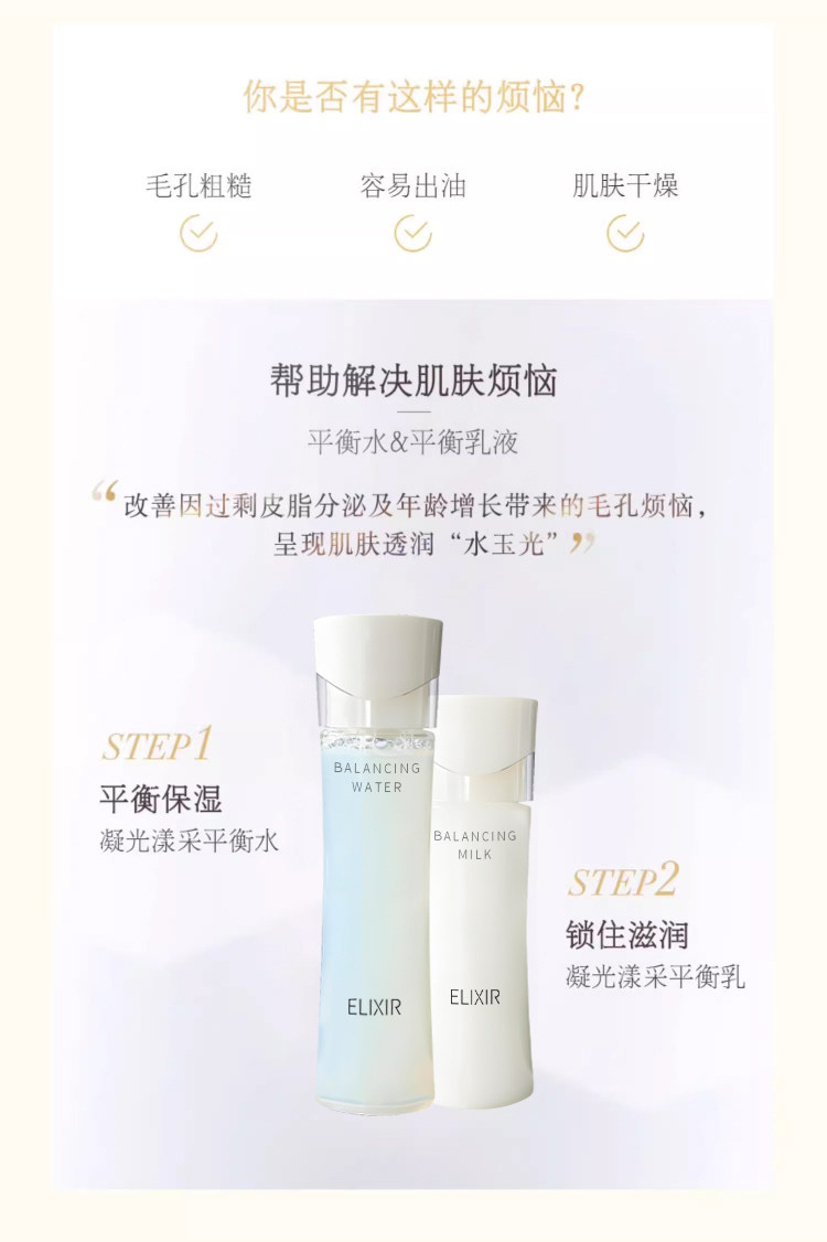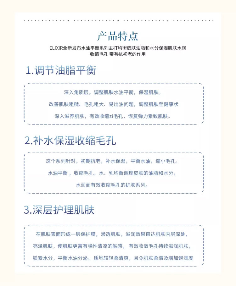ELIXIR/怡丽丝尔水油平衡化妆水乳液收缩毛孔滋润爽肤水(CDF)
