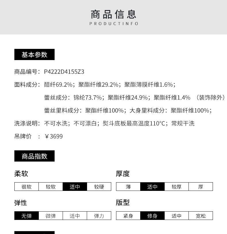 成熟、稳重、高贵典雅、大方得体 融合东方文化的含蓄和法国的浪漫 将创意的艺术性与消费需求相结合 为自信女性塑造高品质场合服装