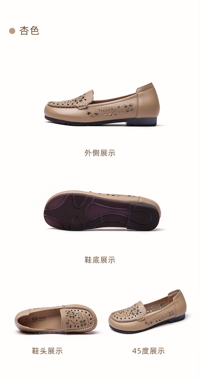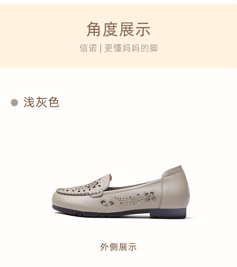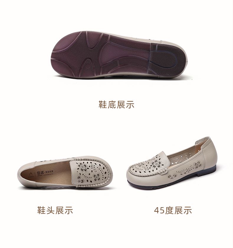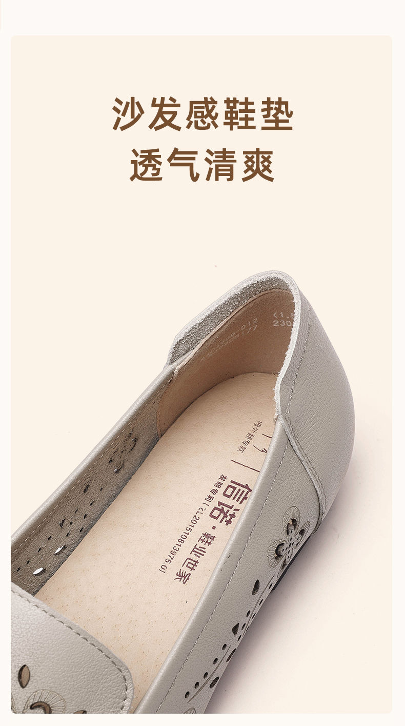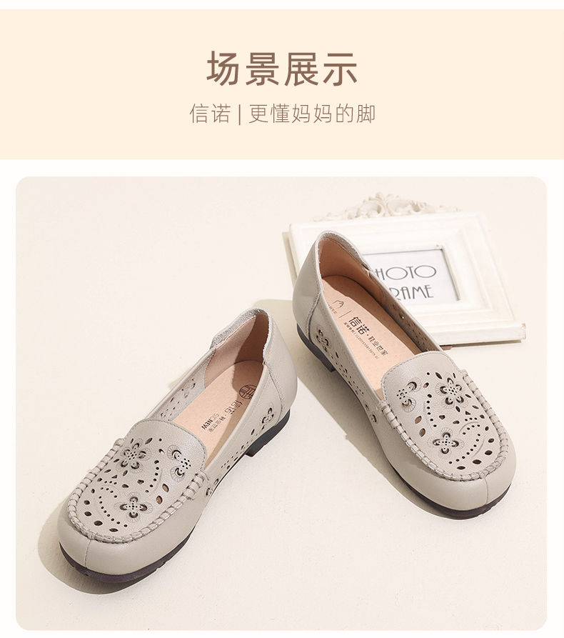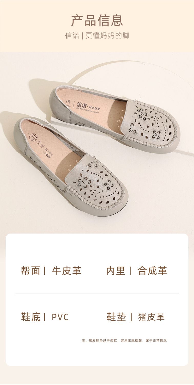 信诺 真皮透气女鞋 2024新款夏季镂空单鞋妈妈鞋软底中老年人凉鞋24C1980-012